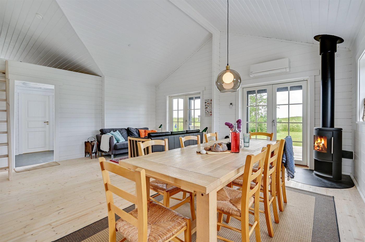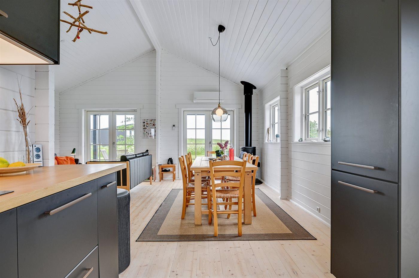 Sommerhuset egner sig til 6 personer. Ferieboligen er på 93 m² og er bygget i 2022. Det er tilladt at medbringe 1 husdyr. Ferieboligen er udstyret med 1 energivenlig luft til luft varmepumpe. Der er gulvvarme i alle klinkegulve. Ferieboligen har vaskemaskine. Frysekapacitet på 70 liter. Der er desuden brændeovn.