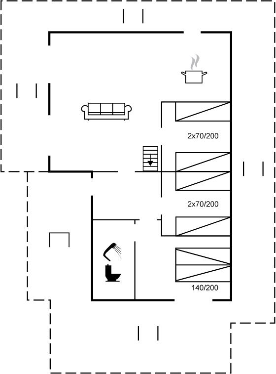 Der er i alt 3 soveværelser. Sovepladserne fordeler sig på: 2 sovepladser i dobbeltseng. 4 sovepladser i enkeltsenge.