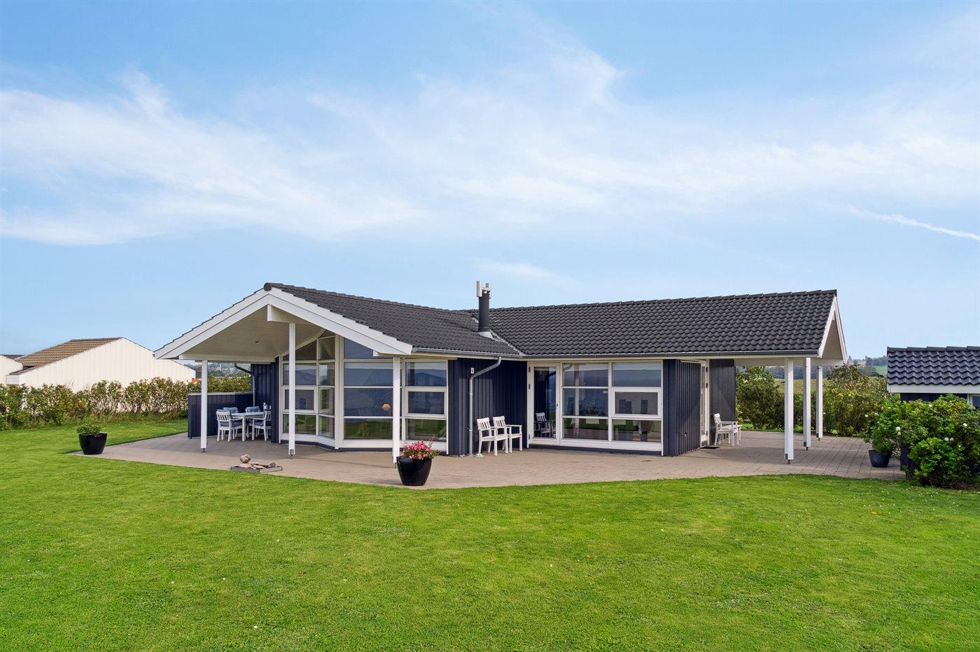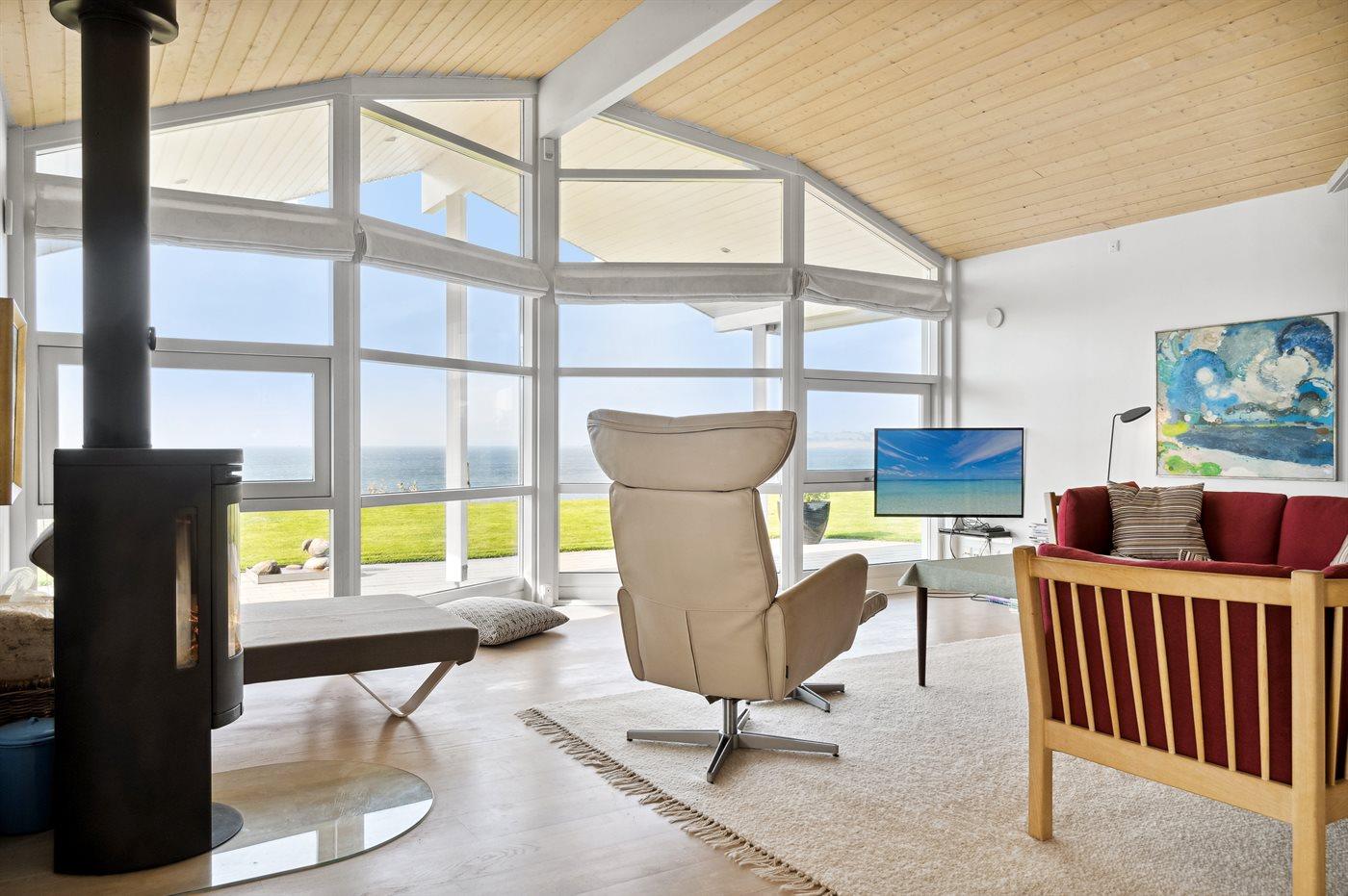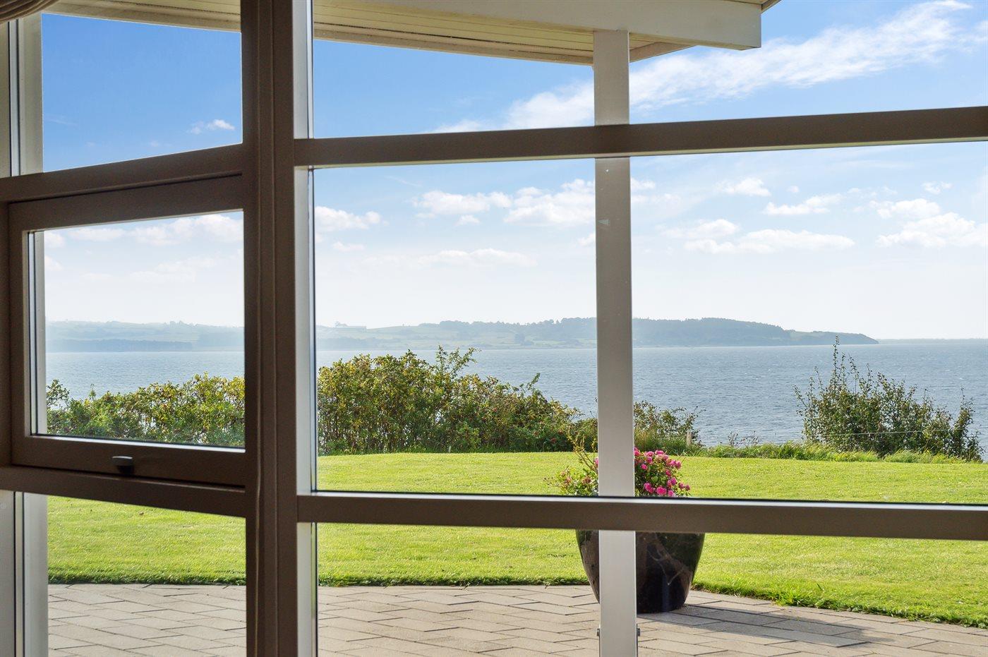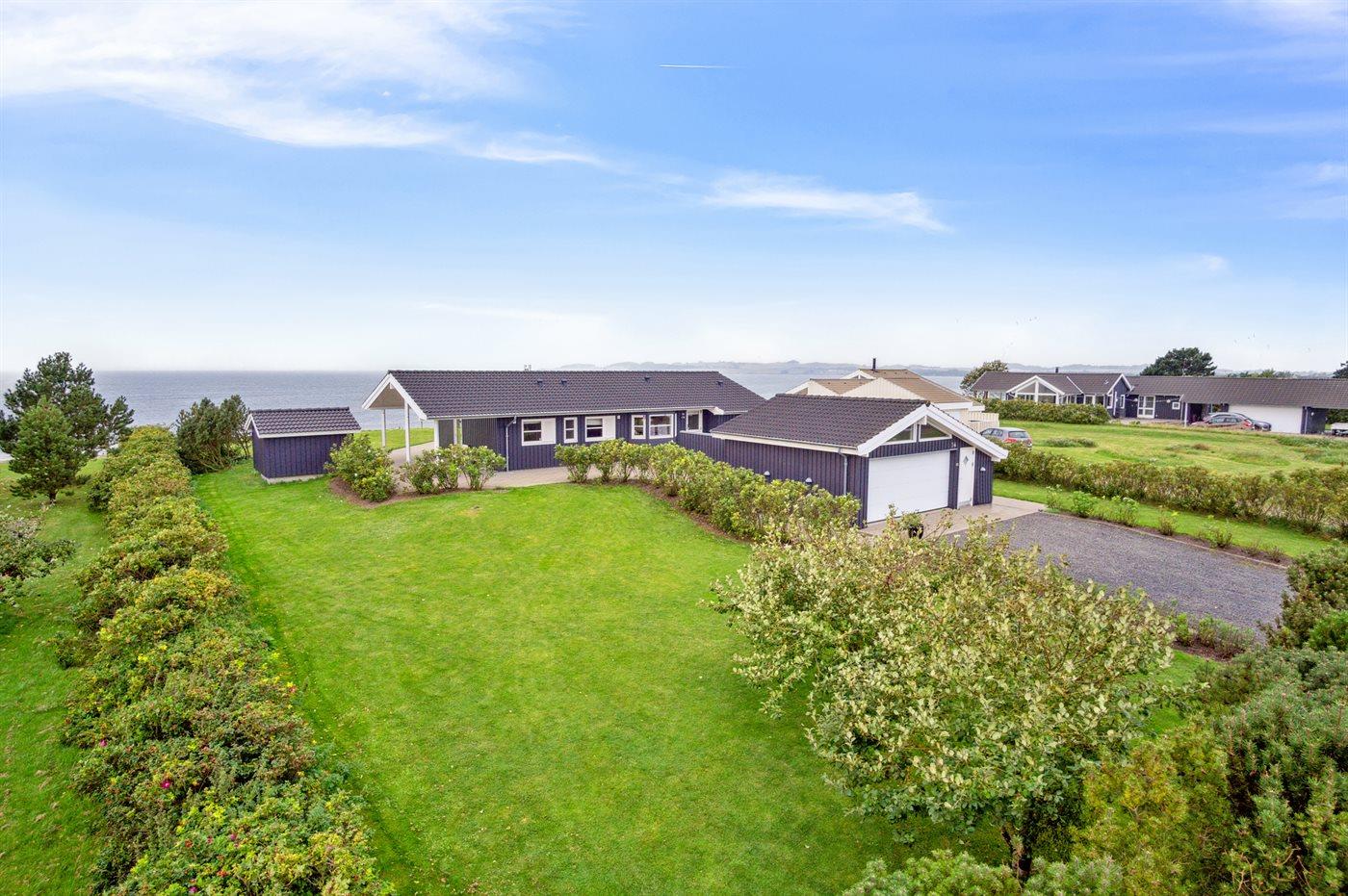 Dette skønne og meget velholdte sommerhus er beliggende ganske eminent med 180 graders panorama udsigt over vandet - en bedre og flottere udsigt er svær at finde. Udsigten er også i fokus inde fra sommerhuset, hvorfra den unikke udsigt bl.a. kan nydes til fulde fra både stue, køkken og soveværelse. Huset har et fantastisk terrasseareal, som også er delvist overdækket ud imod vandet. Her er altid mulighed for at finde en lækrog, da terrassen på husets forside ligger i læ og ganske ugenert.