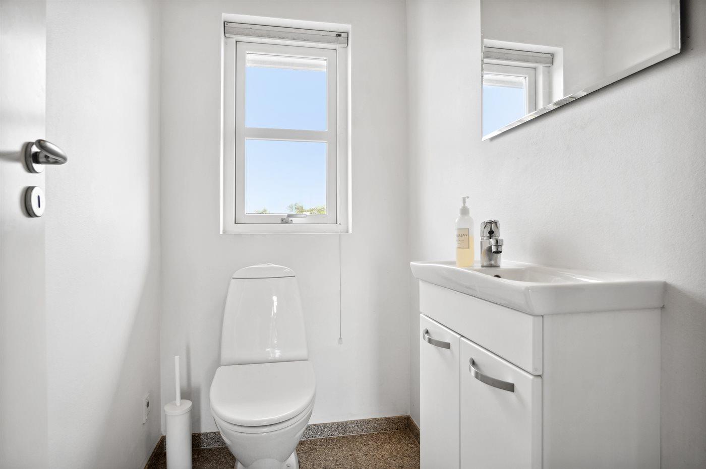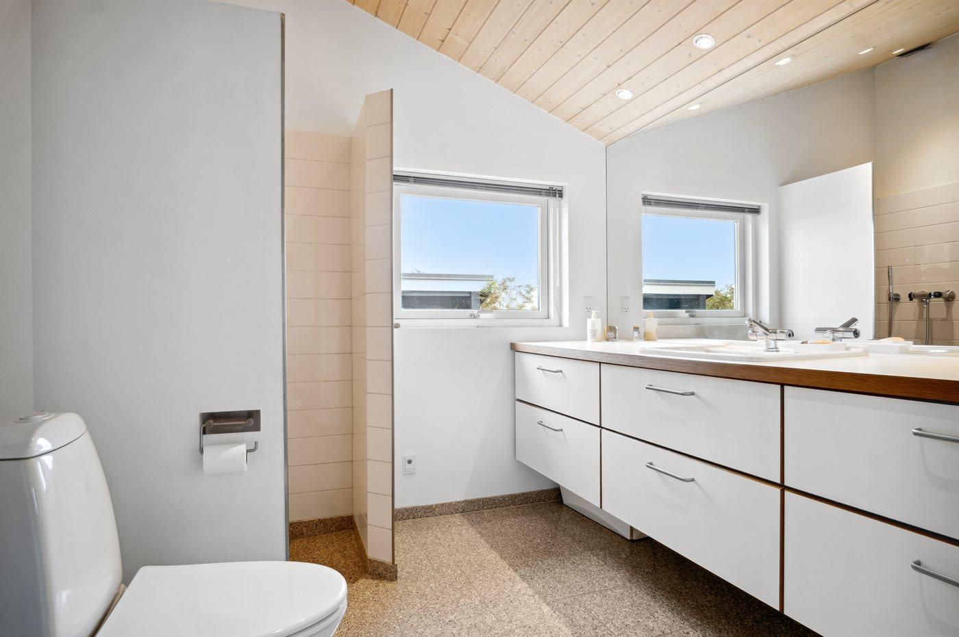 Der er 1 badeværelse med bruseniche og 2 toiletter, heraf 1 gæstetoilet.