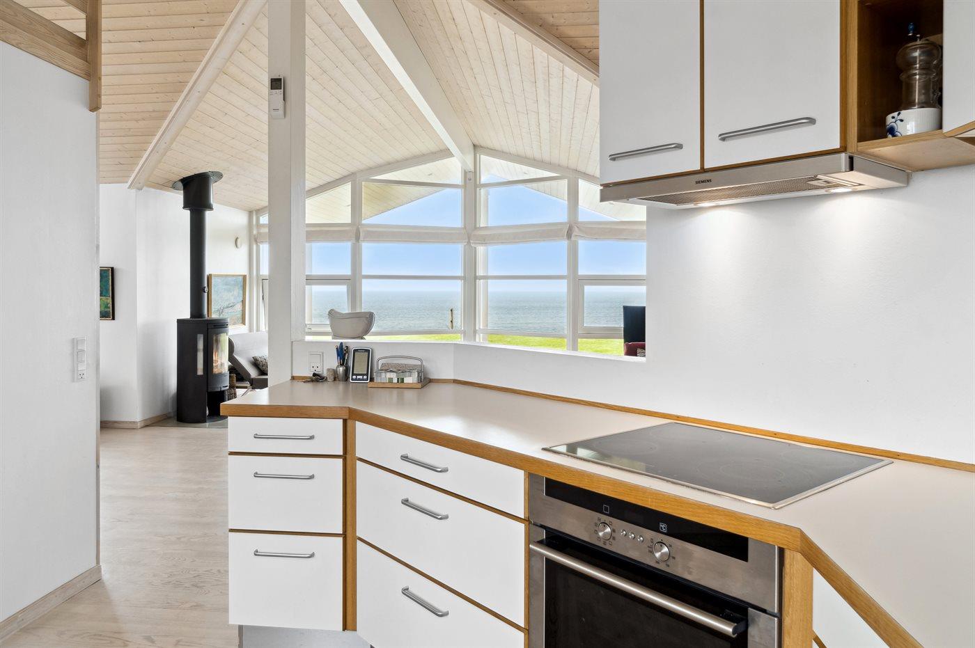 Køkkenet er udstyret med 1 køleskab. Der er 4 keramiske kogeplader, varmluftovn samt opvaskemaskine.