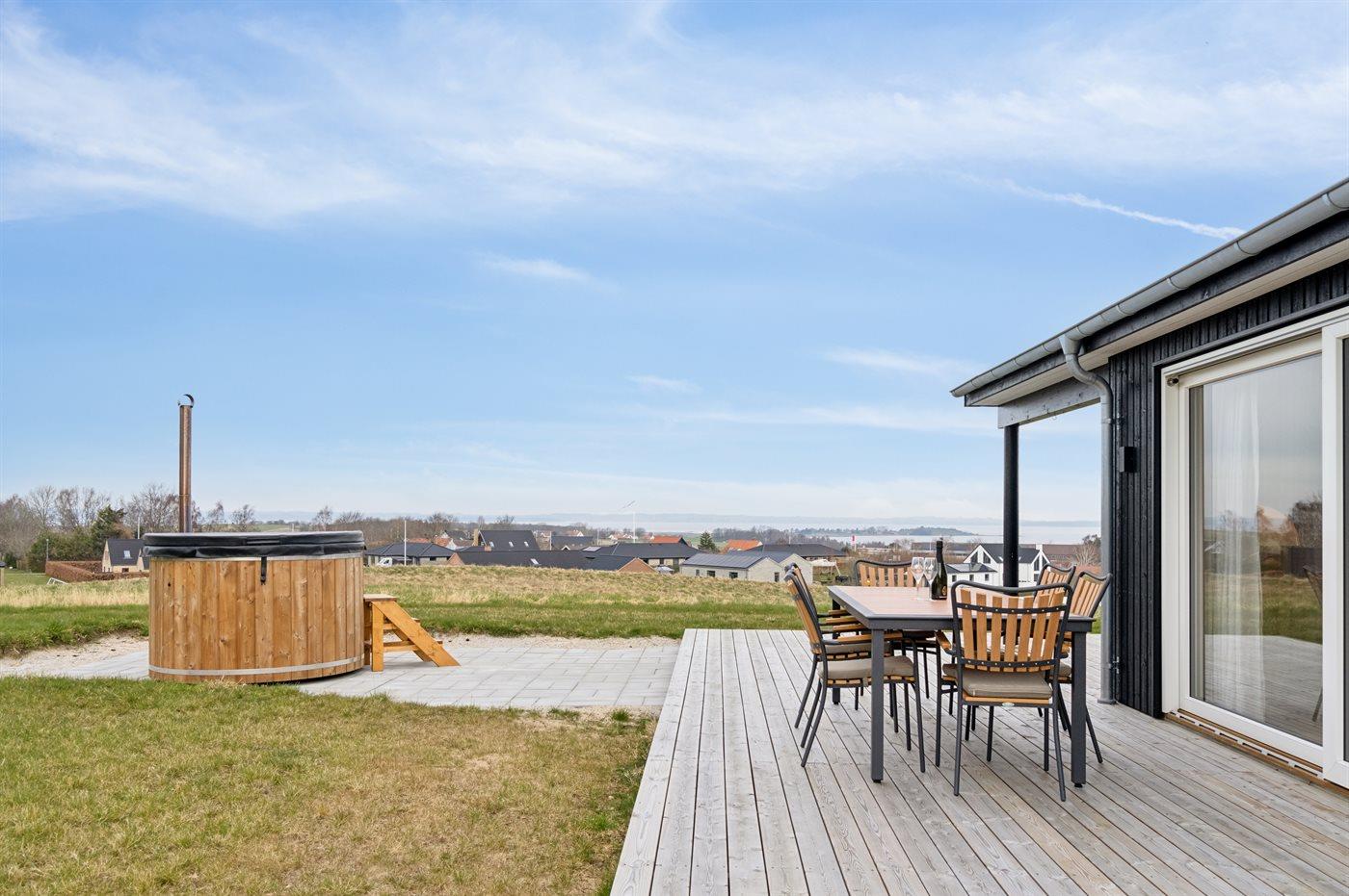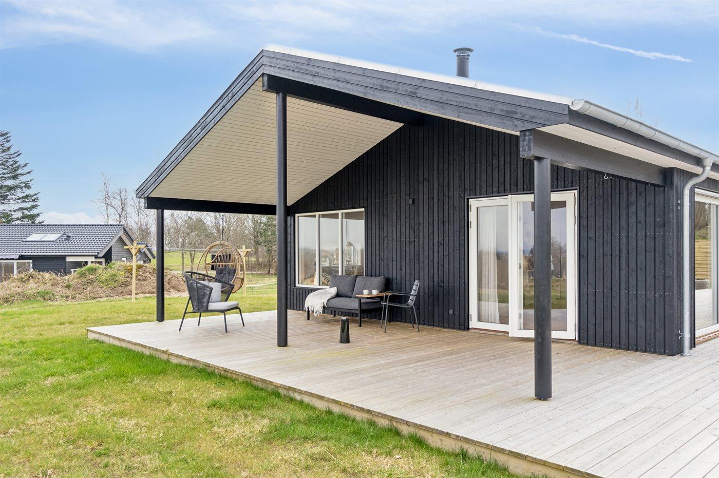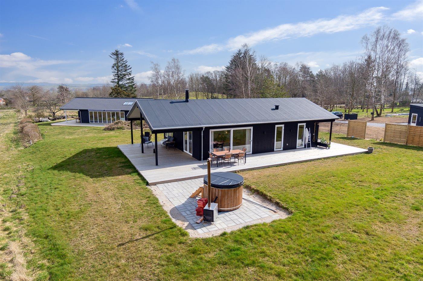 Flot og moderne sommerhus fra 2022 med havudsigt og vildmarksbad nær Begtrup Vig på Djursland.