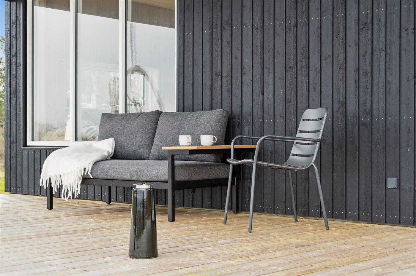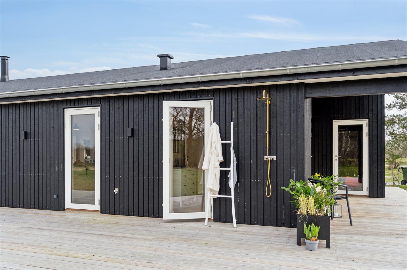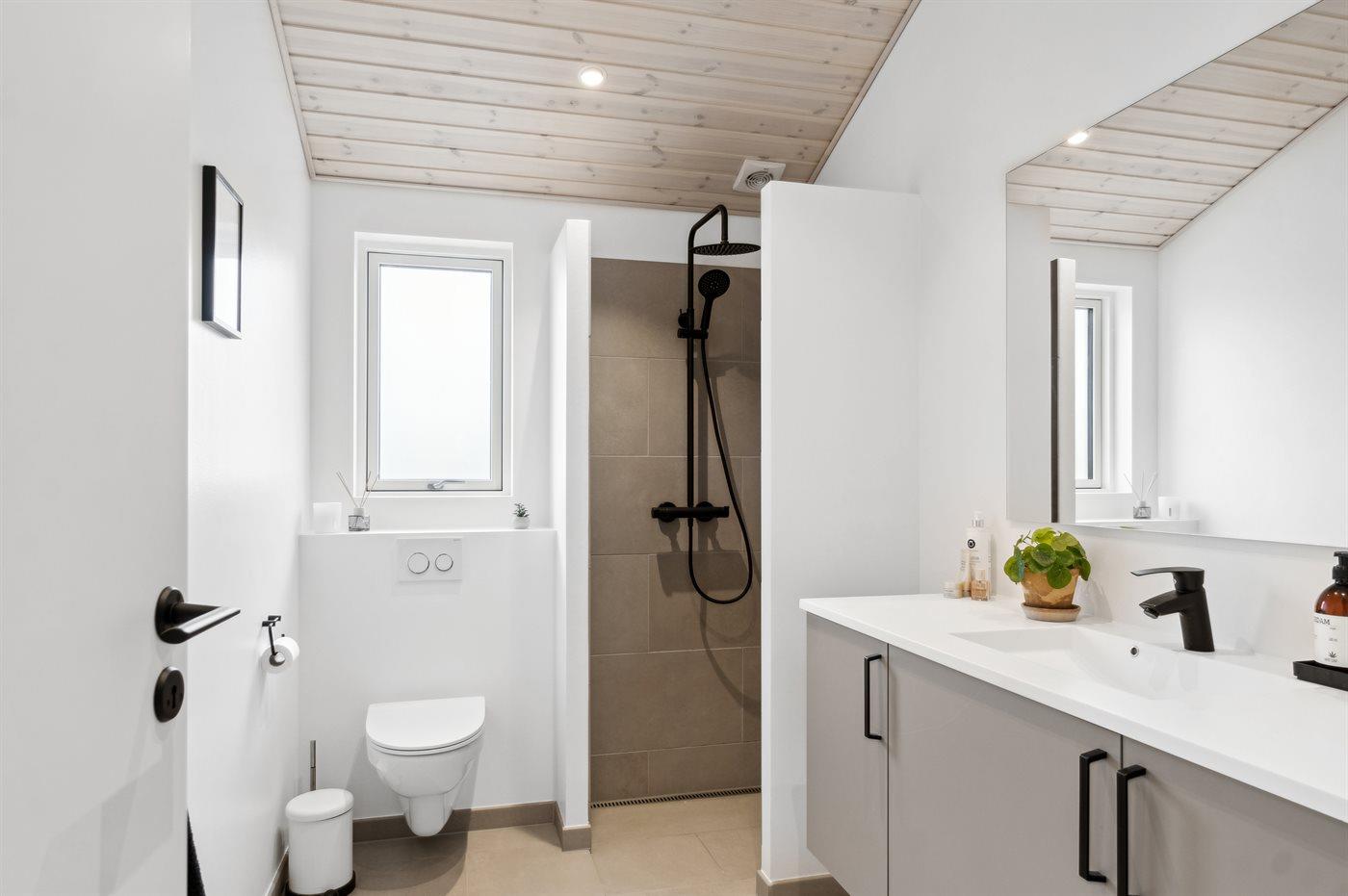 Sommerhuset er virkelig veludført og med en god planløsning, der passer rigtig godt til f.eks. en familie eller, hvis man ønsker at tage bedsteforældre med på ferie. Sommerhuset er meget moderne med bl.a. et stort, flot køkken kombineret med stue. Herfra er der en skøn udsigt via de mange vinduer ud over området med havet i baggrunden. Fra den fantastiske terrasse, som nærmest går hele vejen omkring huset, kan den flotte udsigt ligeledes nydes i fulde drag. Hele familien kan slappe af i det dejlige vildmarksbad, som har en perfekt placering på den store terrasse - også herfra er der udsigt over havet.