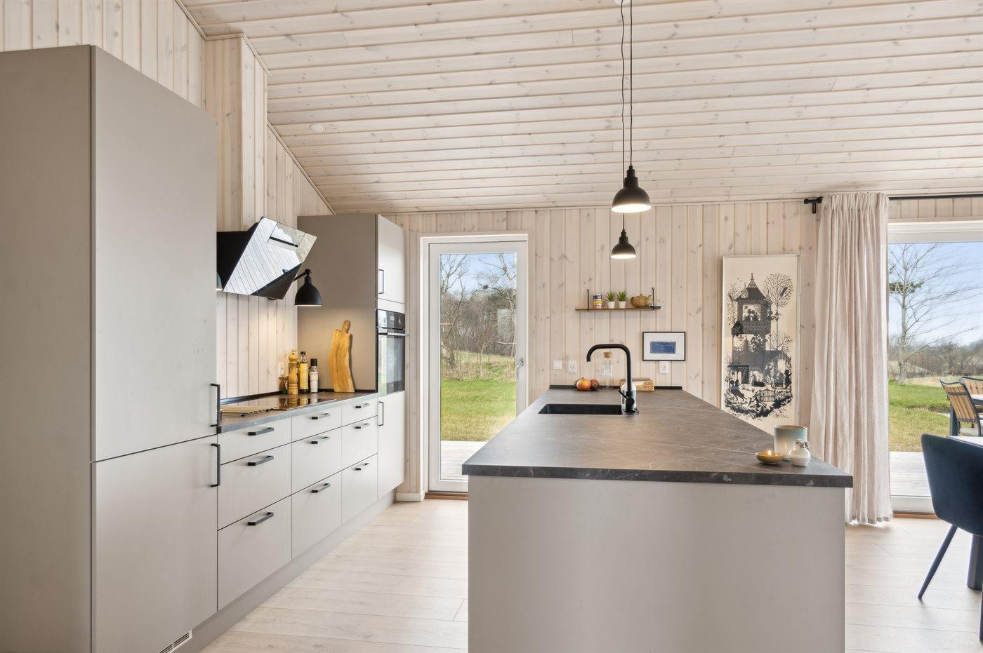 Køkkenet er udstyret med 1 køleskab. Der er 4 induktionskogeplader, varmluftovn samt opvaskemaskine.