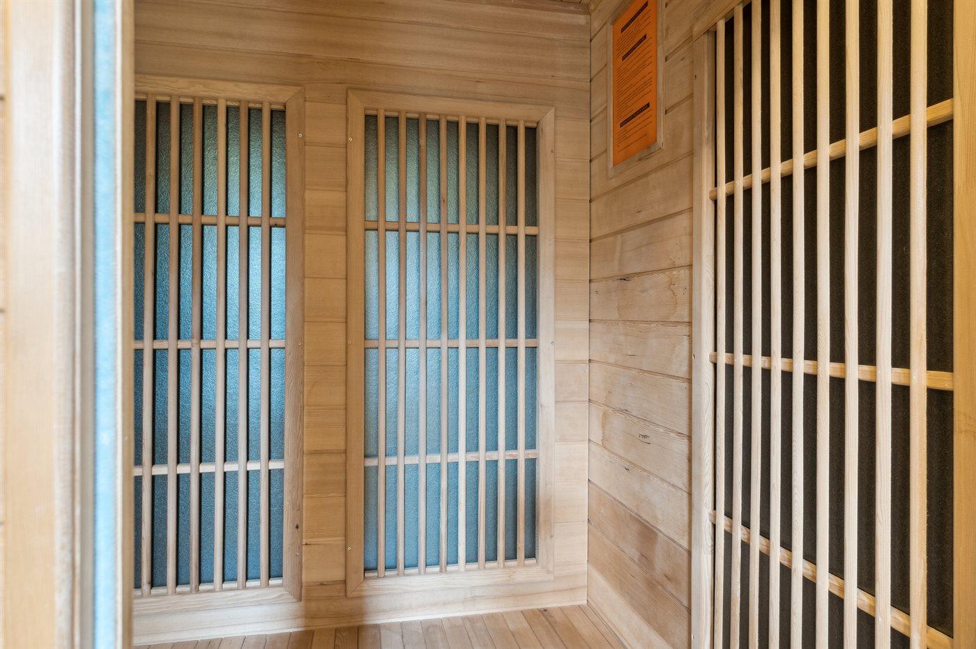 Der er 2 badeværelser med bruseniche og 2 toiletter. Der er gulvvarme på 2 badeværelser. I saunaen er der mulighed for afslapning.