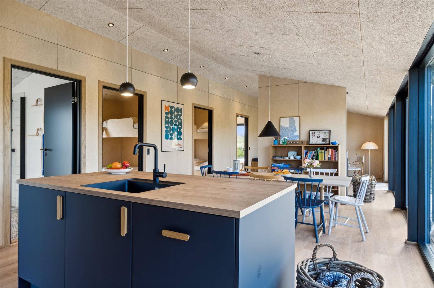 Køkkenet er udstyret med 1 køleskab. Der er 4 induktionskogeplader, varmluftovn samt opvaskemaskine.