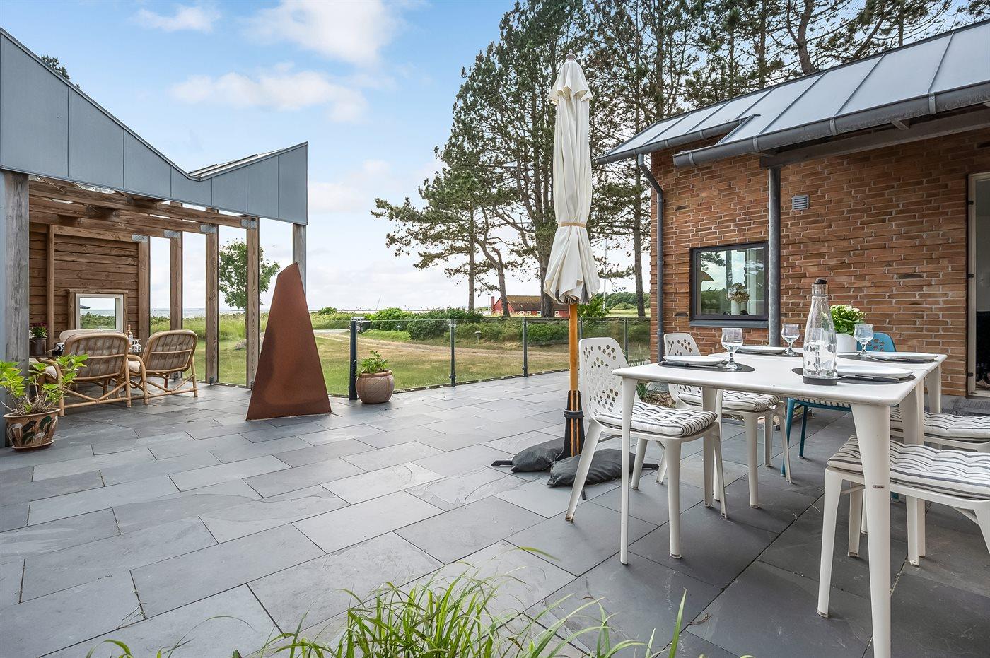 Haven byder på masser af plads til leg og afslapning, og med både overdækkede og åbne terrasser er det nemt at finde læ – eller sol, alt efter humør. Når dagen går på hæld, lokker spabadet med varme bobler.