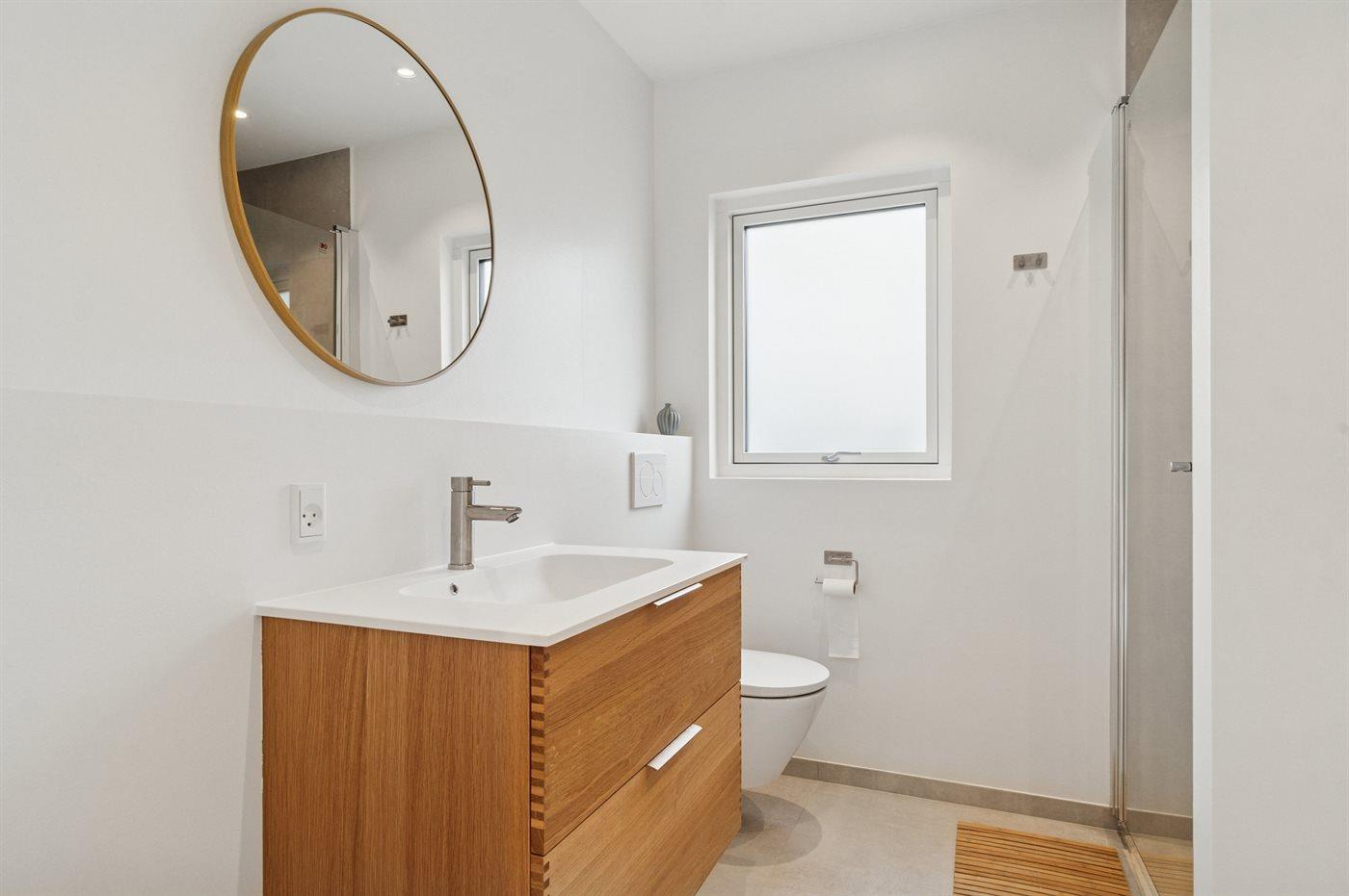 Der er 2 badeværelser med bruseniche og 2 toiletter. Der er gulvvarme på 2 badeværelser.