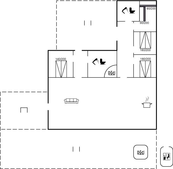 Der er i alt 4 soveværelser. Sovepladserne fordeler sig på: 6 sovepladser i dobbeltsenge. 4 sovepladser i køjesenge.