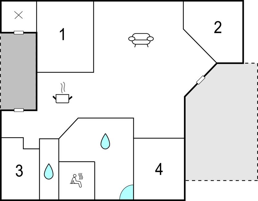 Badeværelse 10m2 (nr. 1) - WC. Varmt og koldt vand. Bruser