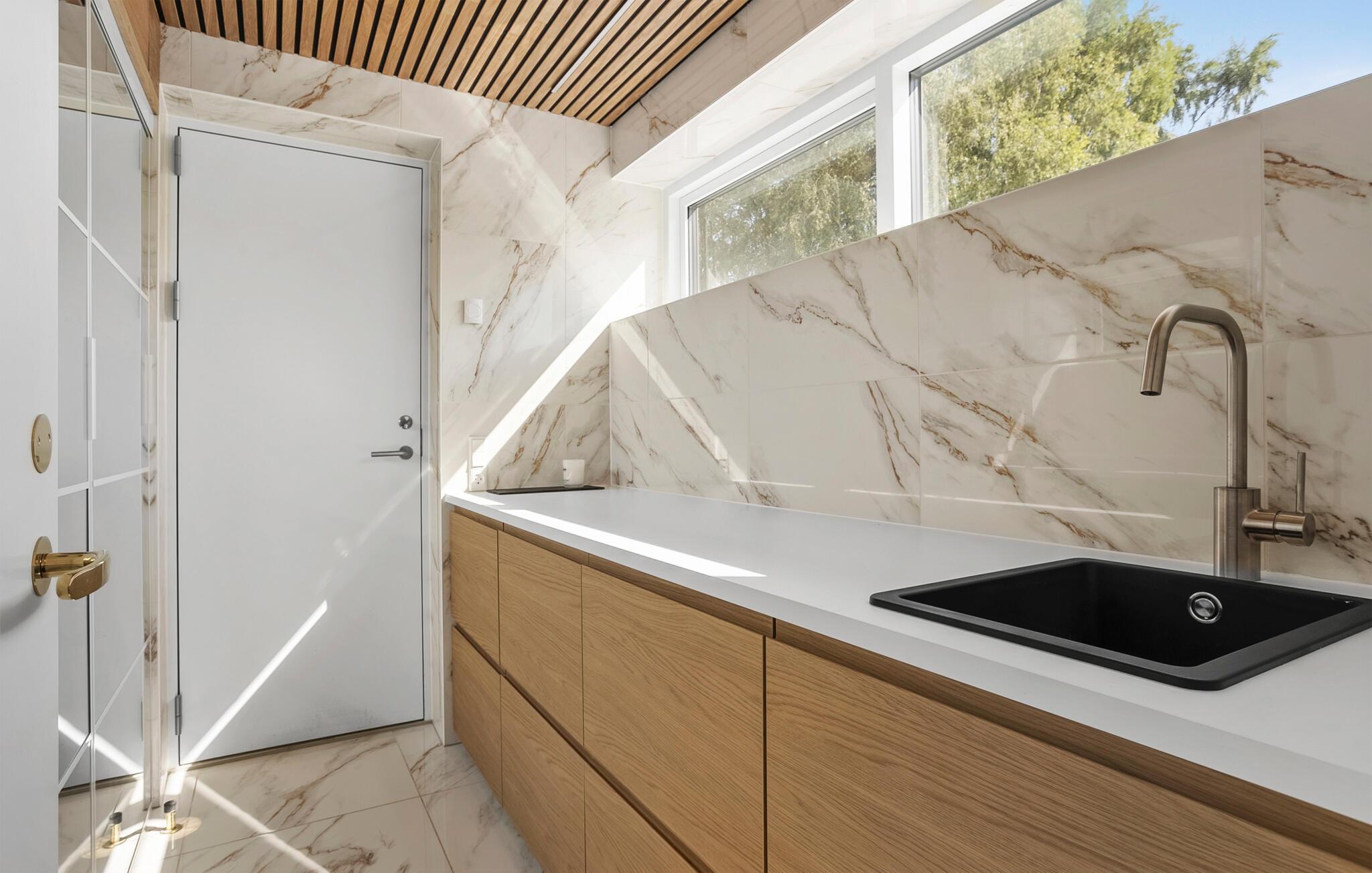 Glæd jer til ren afslapning i dette moderne feriehus med atriumgård og spabad.