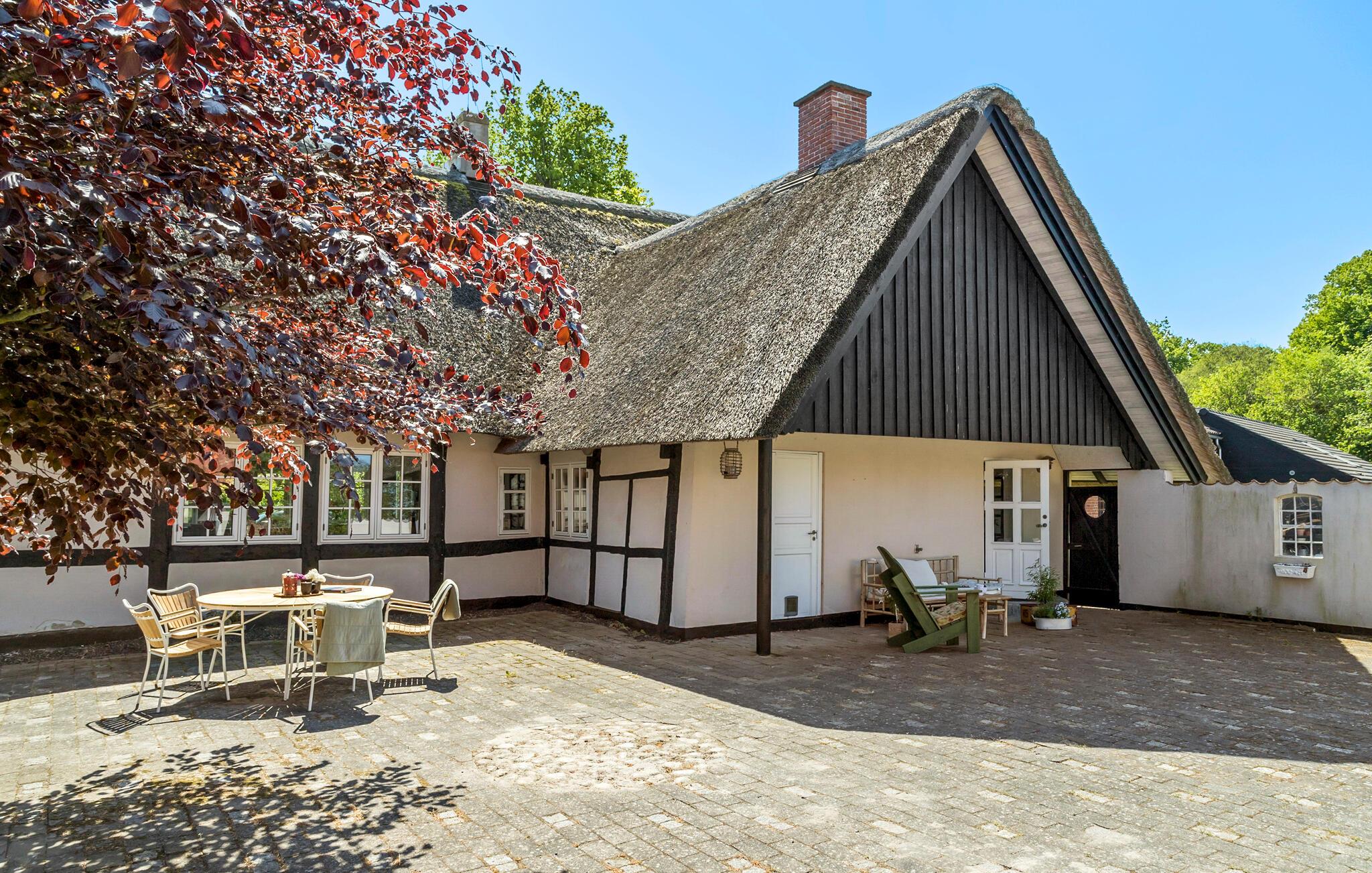 Charmerende bindingsværkshus med stråtag og moderne faciliteter på naturskønne Samsø.