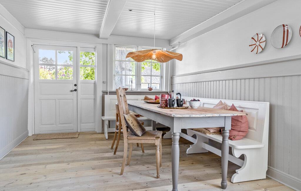Velkommen til dette indbydende hus med bindingsværk og stråtag, der ligger i hyggelige Besser og danner rammen om en herlig ferie med den store familie. Indvendigt får I mange kvadratmeter at boltre jer på og en indretning, der fremtræder virkelig flot med et vellykket mix af det rustikke og det moderne. De velholdte træpaneler- og bjælker suppleres ganske fremragende at de tidssvarende faciliteter, der gør jeres ophold aldeles bekymringsfrit fra det øjeblik, I stiller kufferterne. Lad familiens kokke kræse om livretterne i det veludstyrede køkken, mens andre duellerer i et slag pool eller dart eller bare læser en god bog. Rund aftenen af i det hyggelige sofaområde med snacks og en god film på tv'et, mens I lægger planer for de kommende dage.