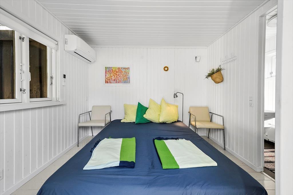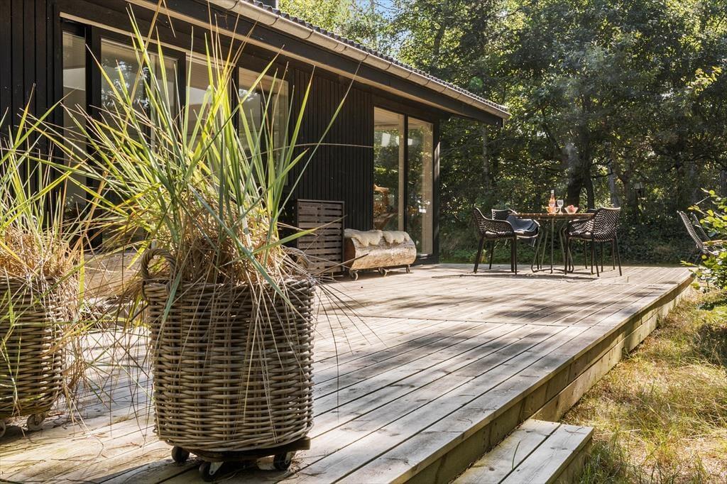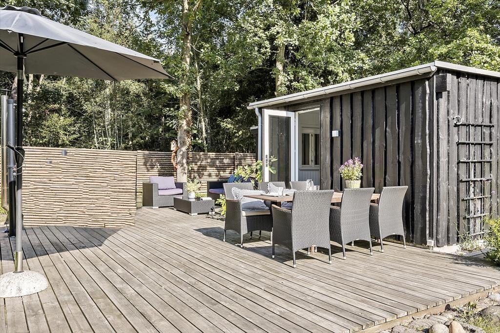 Nyd livet udenfor: Feriehuset ligger helt ugeneret på den 1.254 m2 store, åbne og naturskønne grund, hvor I har kig til vandet gennem træerne. Ydermere får I adskillige terrasser at vælge mellem, heriblandt et lækkert loungeområde med vildmarksbad og udendørsbruser ved annekset samt en overdækket terrasse mod øst. Grunden er helt indhegnet, hvilket gør den perfekt til at medbringe din hund. Ved huset er der havemøbler, liggestole og gasgrill.