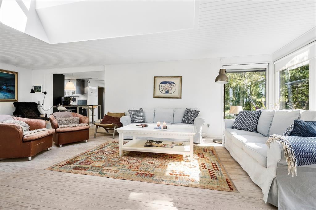 Inden døre venter jer et pragtfuldt køkken-alrum med ovenlys vinduer, flotte fyrretræsgulve - disse går igen næsten overalt. I det funktionelle køkken, finder du alt, hvad du behøver til madlavning og spisning, Køkkenet indeholder indbygget ovn, induktionskogeplade, køleskab og opvaskemaskine. I den store hyggelige og rummelige opholdsstue, som også prydes af ovenlysvinduer og en brændeovn, hersker der en utrolig behagelig atmosfære. Her finder du et stort spisebord, bløde sofaer og hyggelige lænestole. Badeværelse med bruseniche, gulvvarme, vaskemaskine og tørretumbler. Soveværelse med tilhørende ekstra badeværelse, samt to yderligere soveværelser). Desuden er det er anneks med dobbeltseng samt et separat badeværelse.