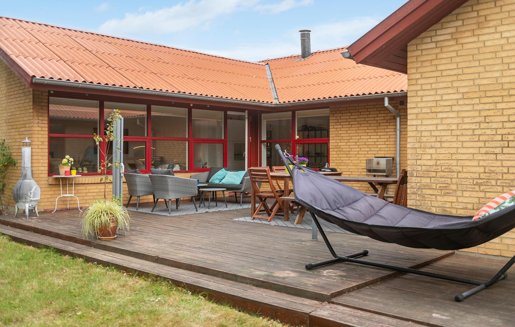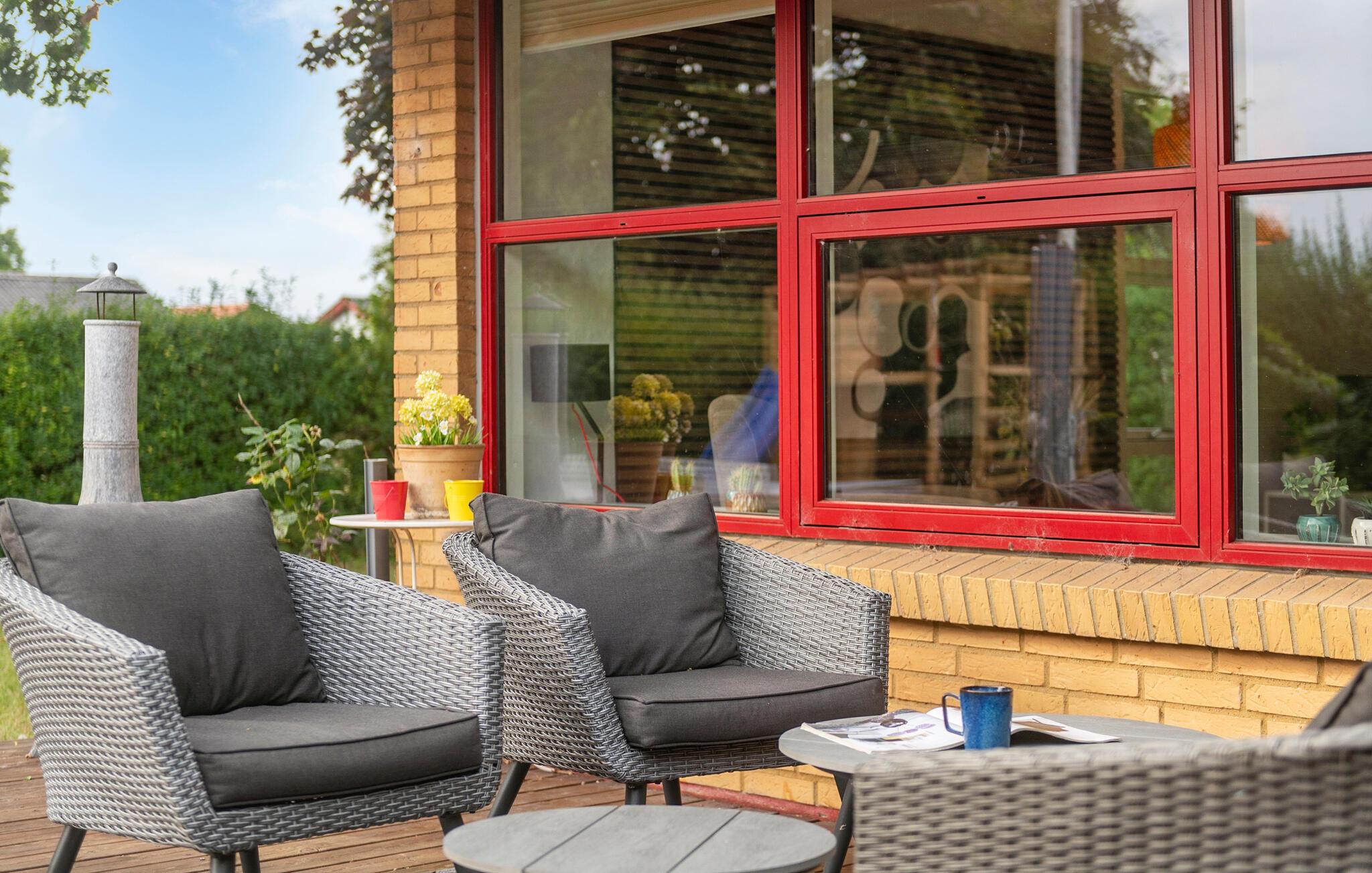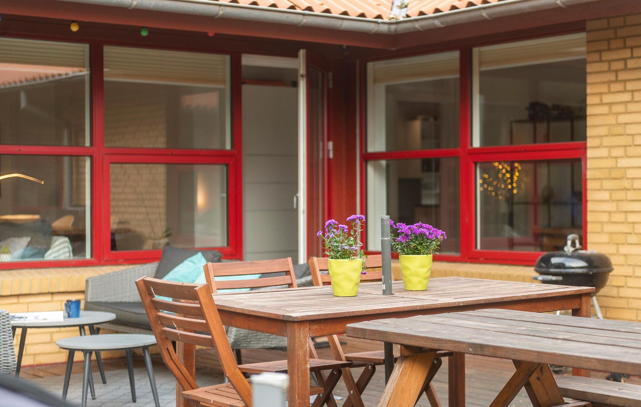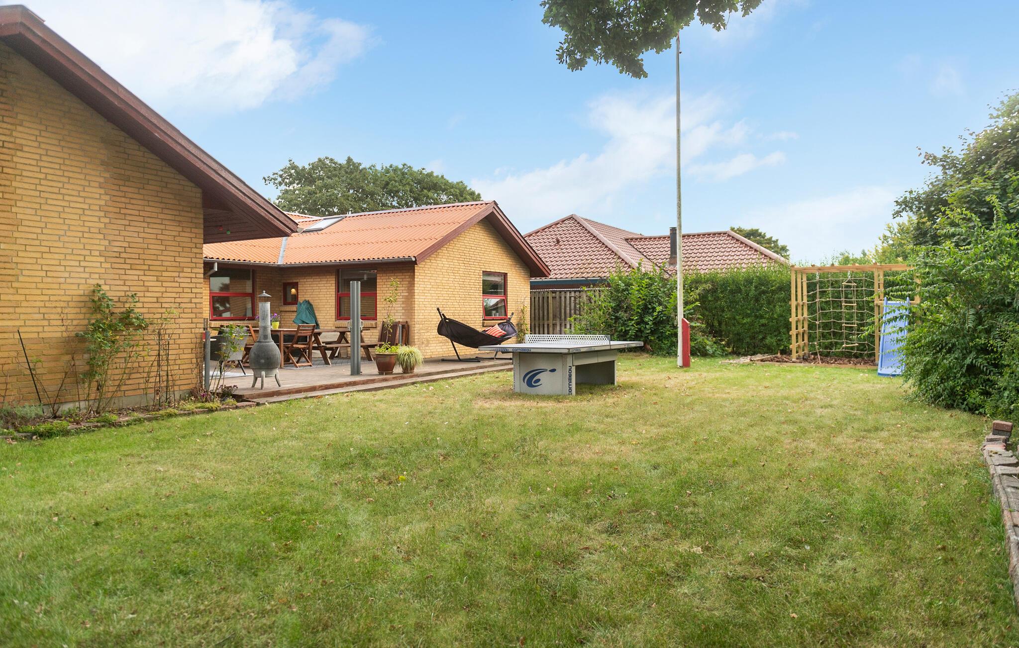 I varmt vejr kan I sidde på terrassen og nyde jeres morgenmad i fred og ro. Læn jer tilbage og slap af, mens I ser børnene lege og boltre sig i haven. Hvis I har lyst til lidt forandring, så tag med dem på et spil bordtennis.