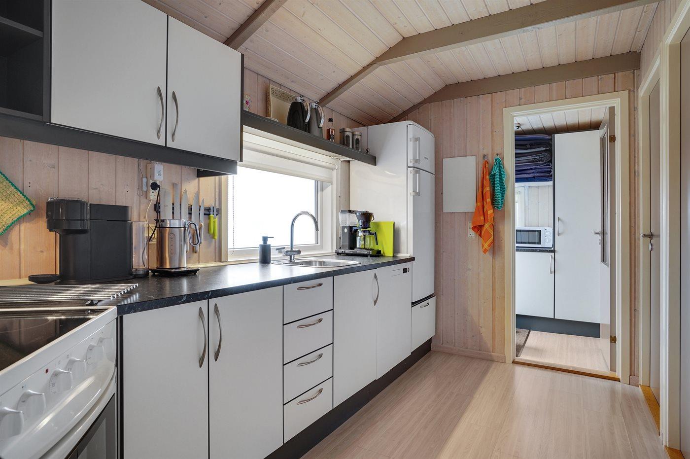 Køkkenet er udstyret med 1 køleskab. Der er 4 keramiske kogeplader, varmluftovn, mikrobølgeovn samt opvaskemaskine.