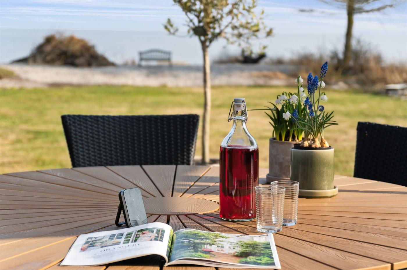 Græsplænen indbyder til alskens spil og leg – også herfra er der en fantastisk udsigt over vandet. Desuden er der kun 300 meter til restaurant og isbod.