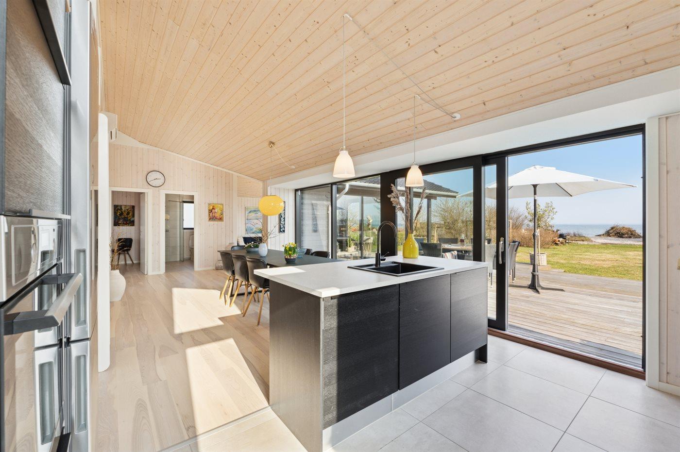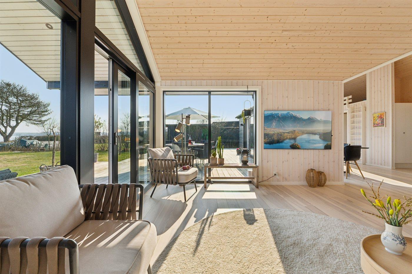 Nyt sommerhus fra 2023 med havudsigt og privat adgang til børnevenlig strand ved Binderup.