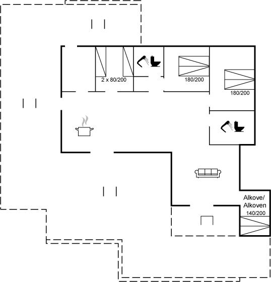 Huset er indrettet med 3 soverum med gode senge samt en alkove med en god madras (140cm). Som en ekstra bonus findes der også en stor hems.