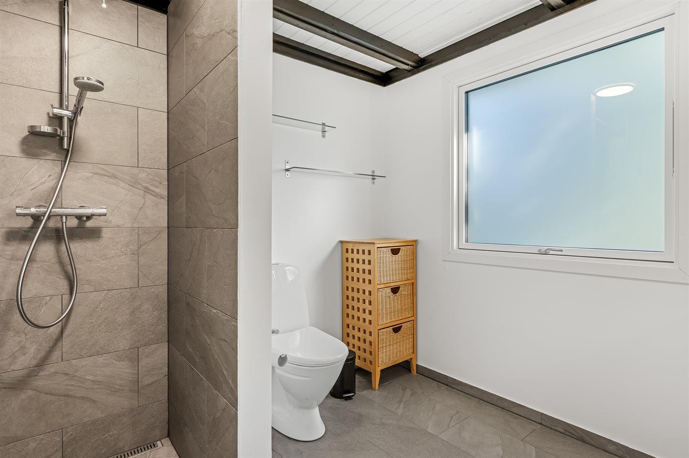 Der er 2 badeværelser med bruseniche og 2 toiletter. Der er gulvvarme på 2 badeværelser.