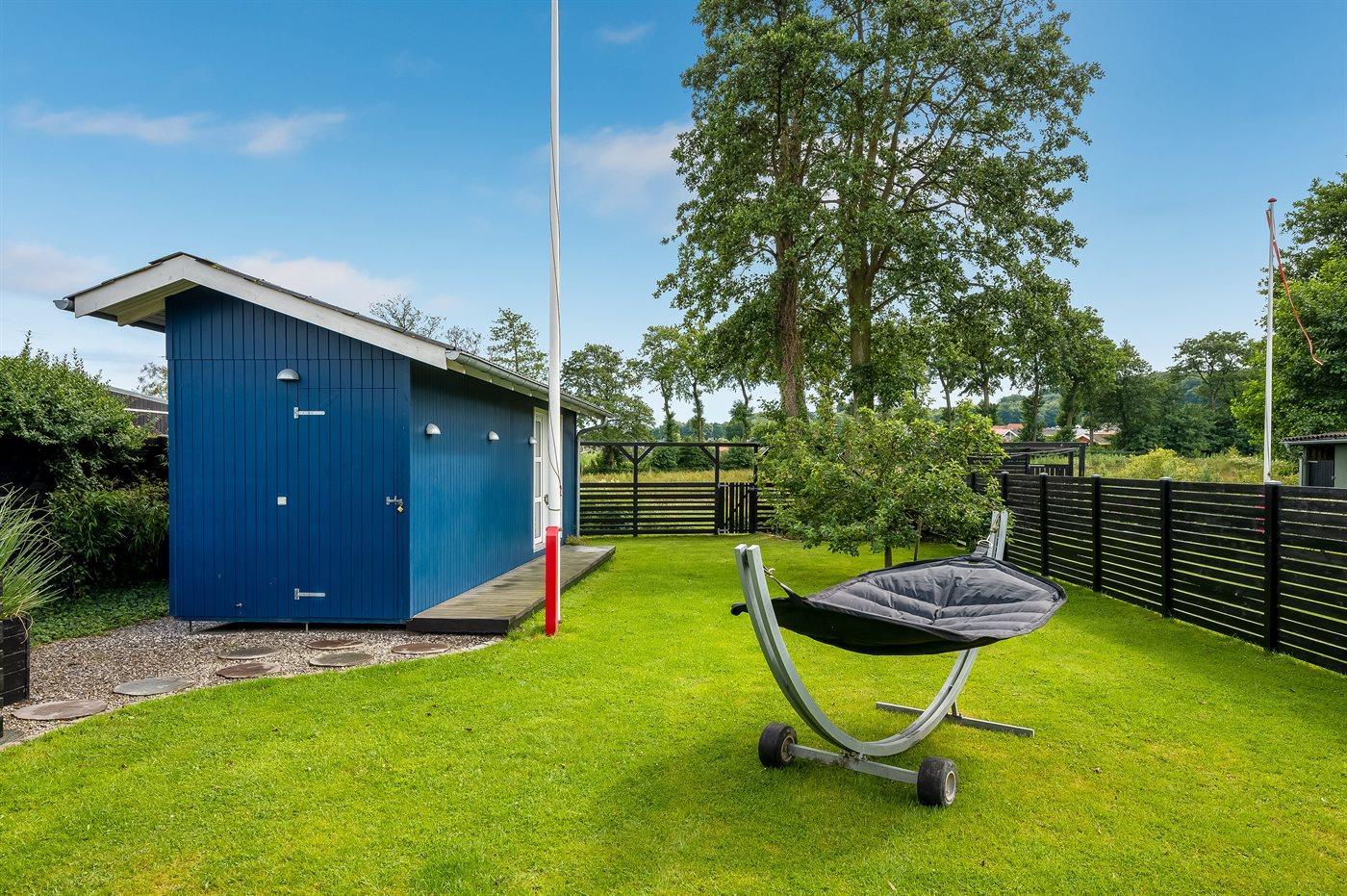 Ferieboligen er beliggende på en 454 m² stor naturgrund. Grunden er indhegnet. Der er 50 m til havet. Nærmeste forretning er beliggende i en afstand af 6500 m. Til ferieboligen hører åbent terrasseareal. Desuden er der overdækket terrasse. Bålsted. Grill til rådighed. Parkering ved ferieboligen.