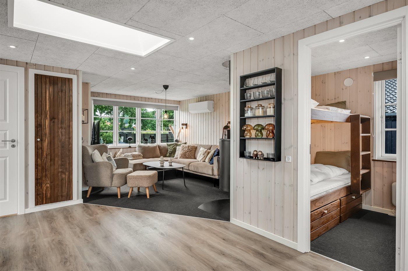Der er i alt 3 soveværelser. Sovepladserne fordeler sig på: 4 sovepladser i dobbeltsenge. 2 sovepladser i køjeseng. 2 af disse sovepladser befinder sig i anneks.