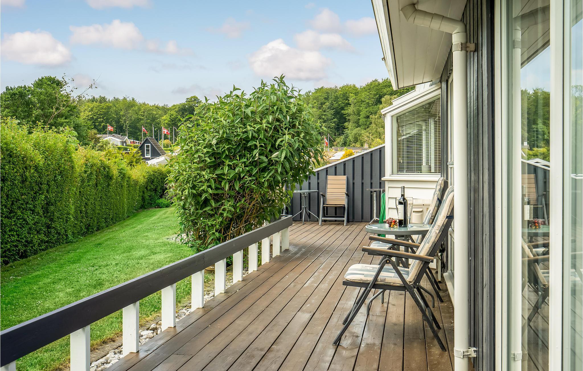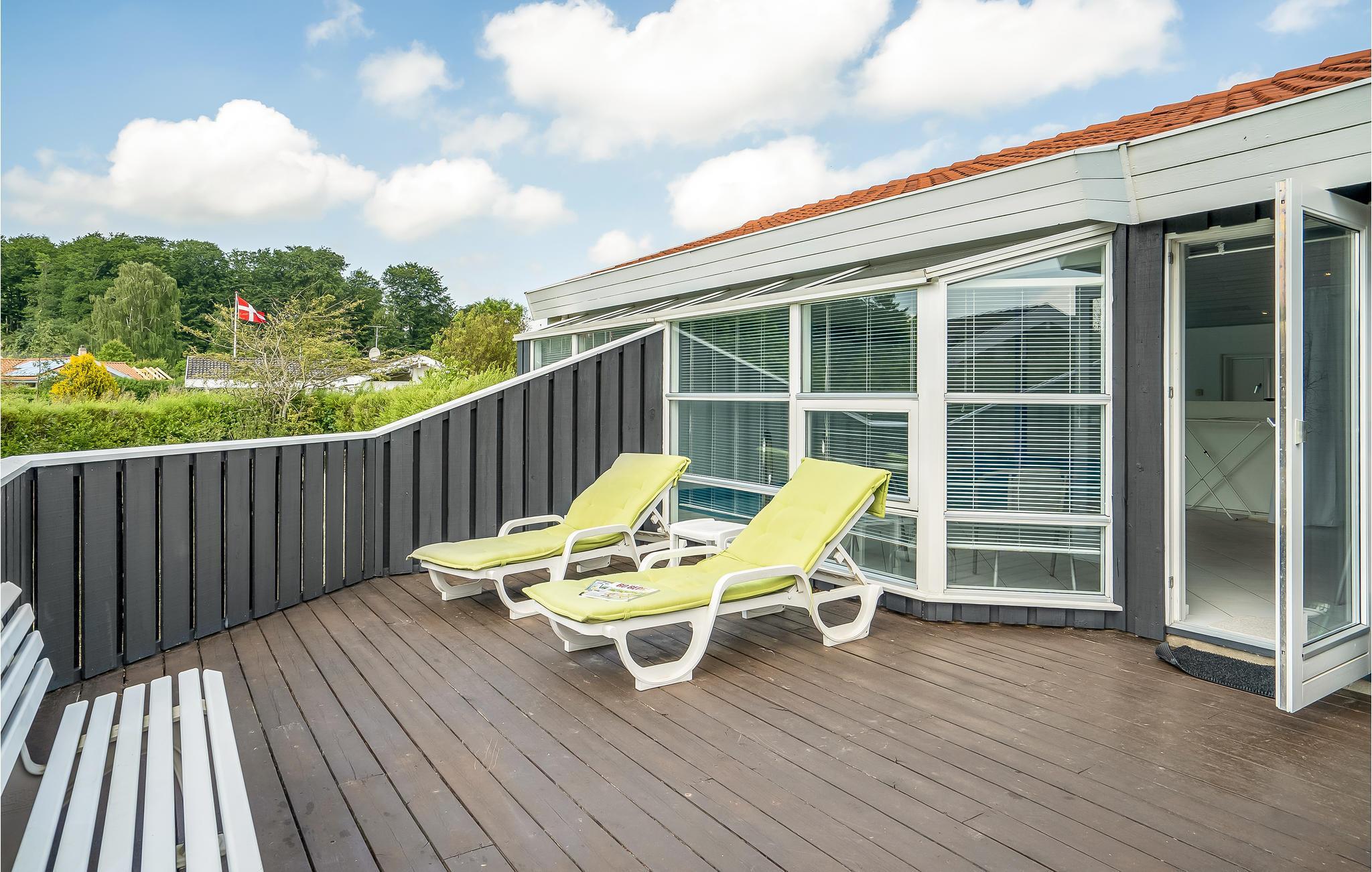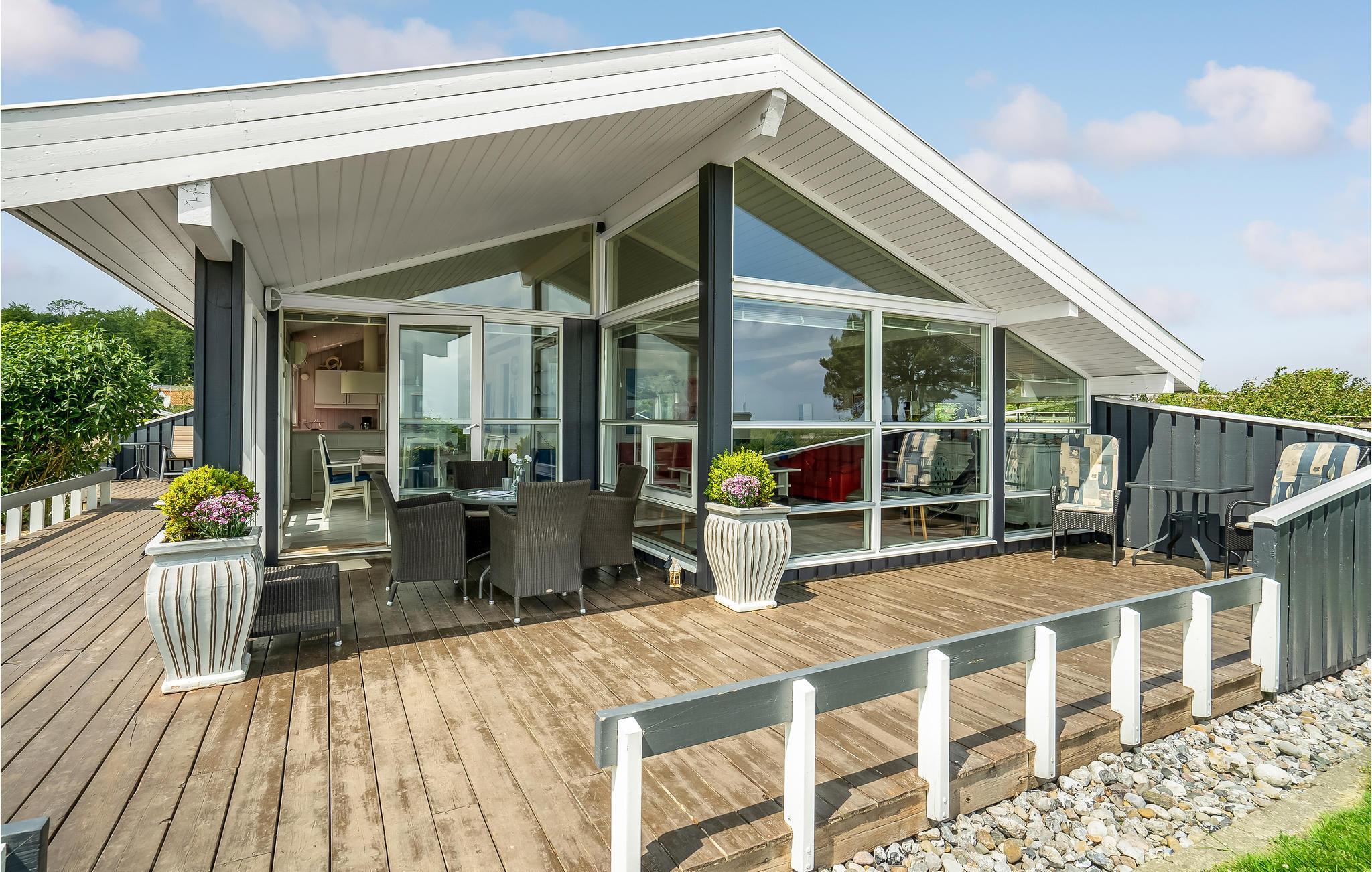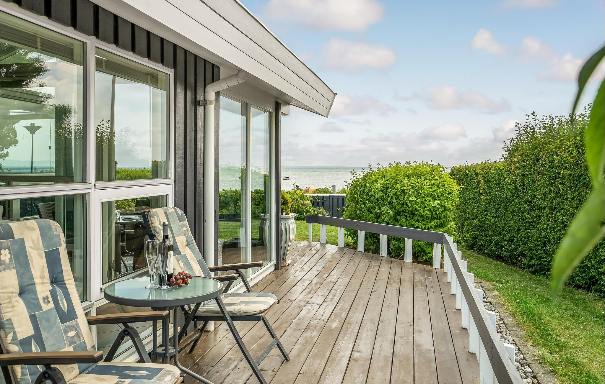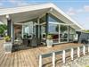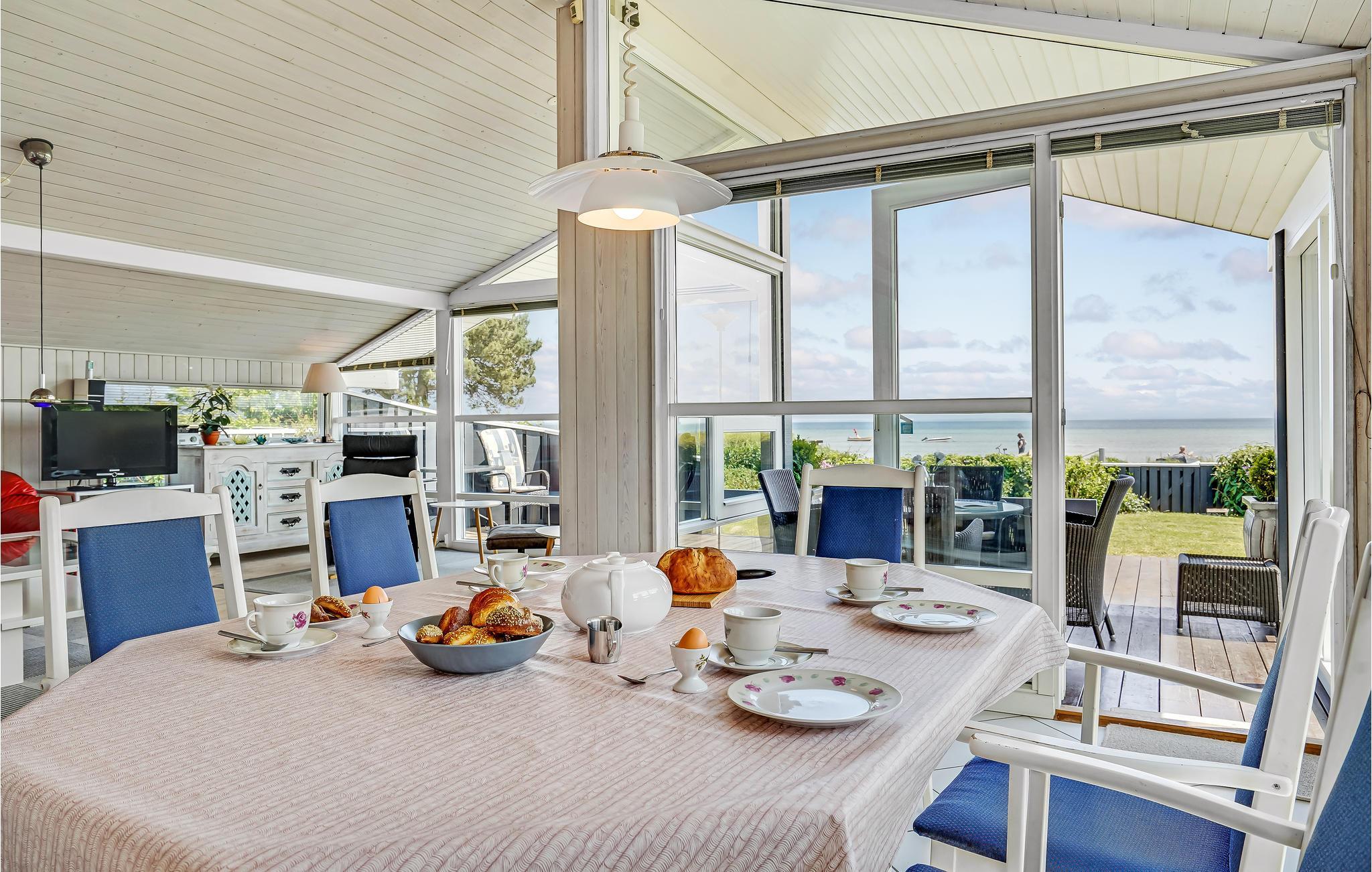 Hyggeligt feriehus ved Binderup Strand med indendørspool, sauna og panoramaudsigt over havet.