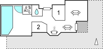 Huset er hyggeligt indrettet og byder på to soveværelser med plads til op mod seks personer. Der er lagt op til mange timers sjov i poolområdet, og i saunaen kan I få varmen efter en frisk gåtur ved vandet.