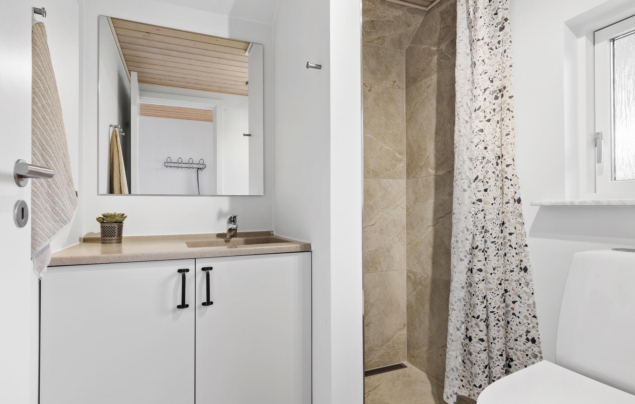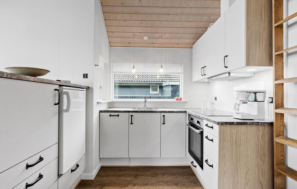 Med kun 10 m til områdets mest børnevenlige badestrand får I ikke bedre beliggenhed end i dette skønne sommerhus. Huset ligger på en lille grund med to gode overdækkede terrasser, det ene med direkte udsigt til stranden og det andet på bagsiden af huset, så I kan sidde ugenert og nyde kaffen eller aftensmaden. Inde fra huset kan I også nyde udsigten gennem de store panoramavinduer, både fra stuen og køkkenet som ligger i åben forbindelse. Der er et dejligt soveværelse med skabsvæg i huset, og med indgang fra den overdækkede terrasse er der adgang til et stort anneks med yderligere en dobbeltseng. Derudover findes der to sovepladser på hemsen. Et rigtig dejligt sommerhus hvor I kan nyde ferien, badestranden og tage på udflugt i området.