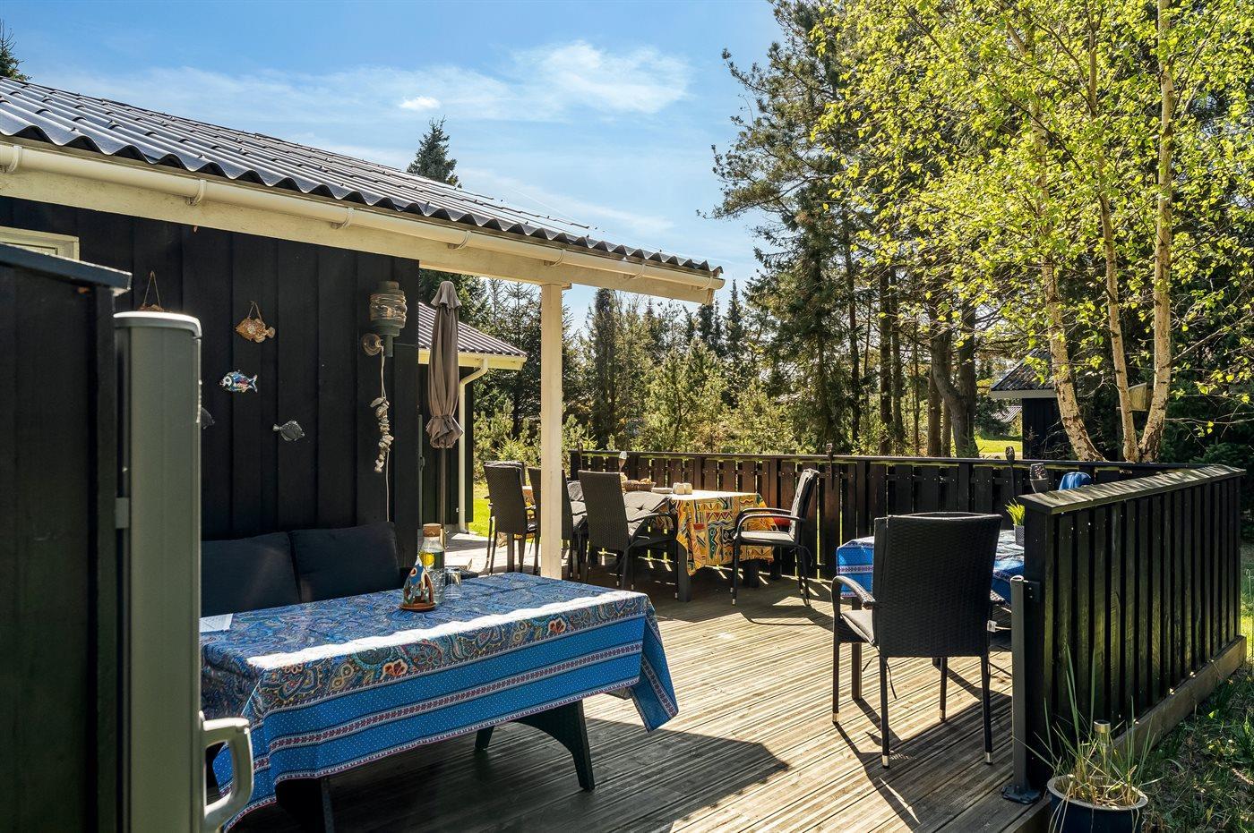 Ferieboligen er beliggende på en 1058 m² stor havegrund. Der er 200 m til havet. Nærmeste forretning er beliggende i en afstand af 2000 m. Der er en golfbane i en afstand af 500 m. Til ferieboligen hører 40 m² terrasseareal. Desuden er der 9 m² overdækket terrasse. Gynge. Sandkasse. Bålsted. Der er installeret stik til opladning af elbil. Parkering ved ferieboligen.