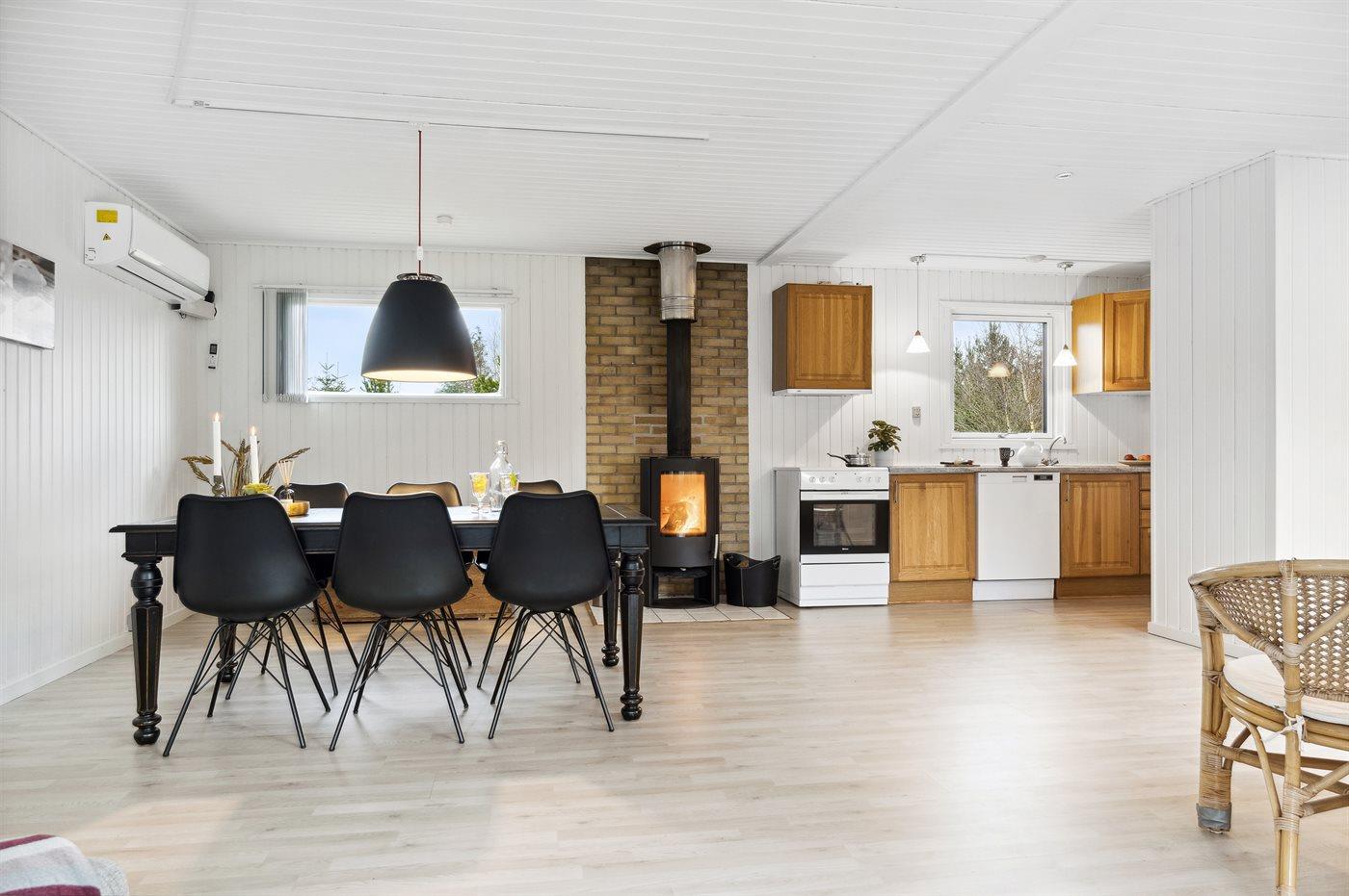 Indvendigt fremstår sommerhuset i rigtig fin stand og har løbende gennemgået en stor modernisering senest i 2023. Dette er sket med respekt for husets oprindelige detaljer, hvilket giver en god og hyggelig atmosfære. Husets hjerte er den store stue med køkken/alrum i ét og med et godt lysindfald og direkte adgang til en skøn terrasse. Sommerhuset er godt indrettet, og her er god plads til f.eks. en familie med 2-3 børn eller to par - mulighederne er mange.