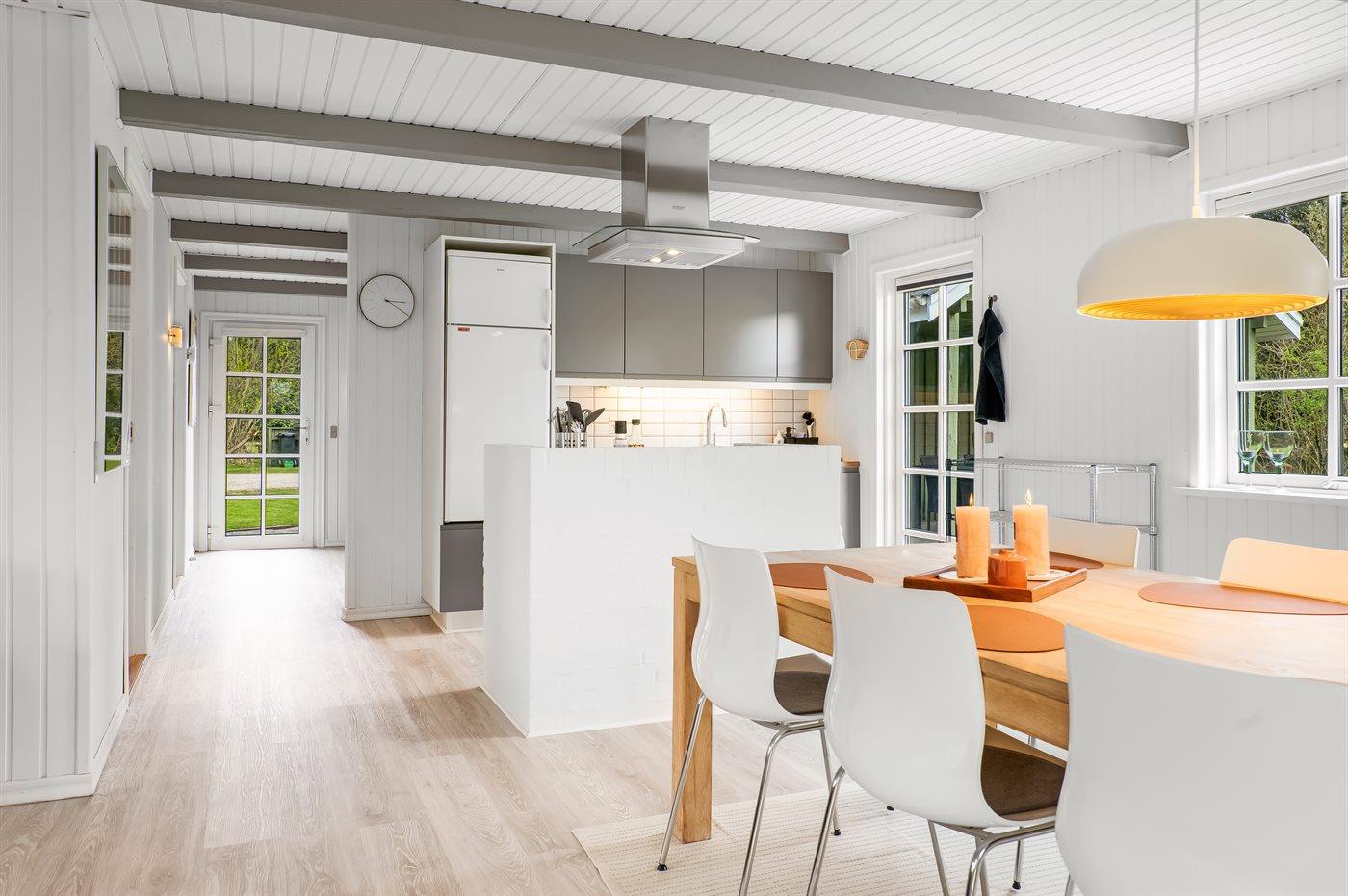 Indvendigt fremstår sommerhuset i utrolig fin stand og har gennemgået en stor modernisering i 2024, så det fremstår lyst og moderne. Husets hjerte er den store stue med køkken/alrum i ét og med et godt lysindfald og direkte adgang til en skøn terrasse. Sommerhuset er godt indrettet, og her er god plads til f.eks. en familie med 2-3 børn eller to par - mulighederne er mange i dette dejlige sommerhus.