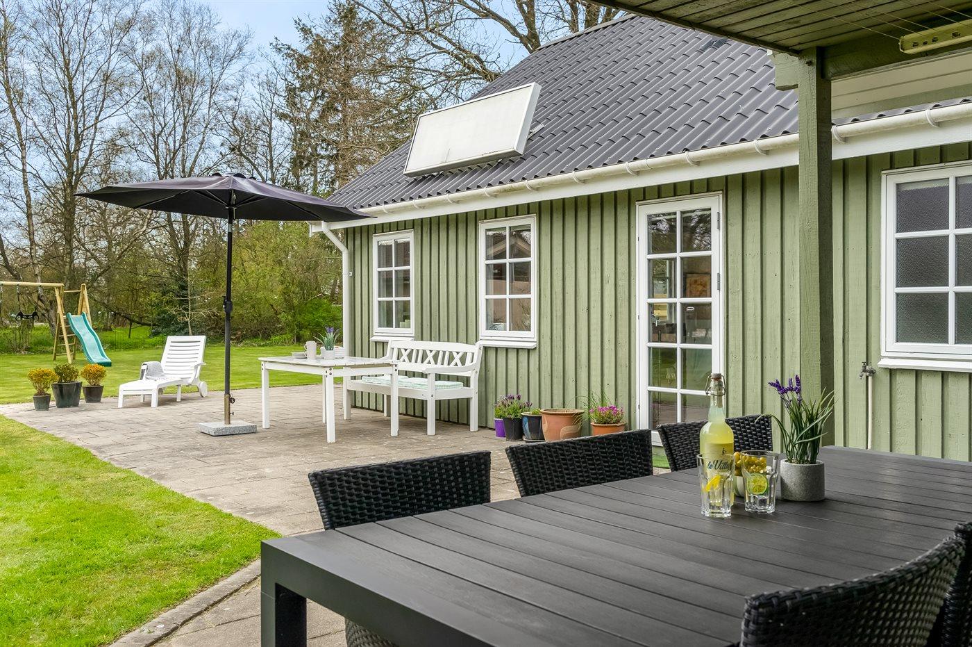Sommerhuset ligger på en dejlig, indhegnet grund med god plads til at boltre sig, og for en familie med hund er dette sommerhus rigtig fint. Derudover er beliggenheden ugenert, og man føler sig i høj grad i ét med naturen, når man sidder og nyder et glas vin eller en kop kaffe på den dejlige terrasse, hvorfra det også er muligt at nyde solen og samtidigt have et godt overblik over haven, imens børnene leger.