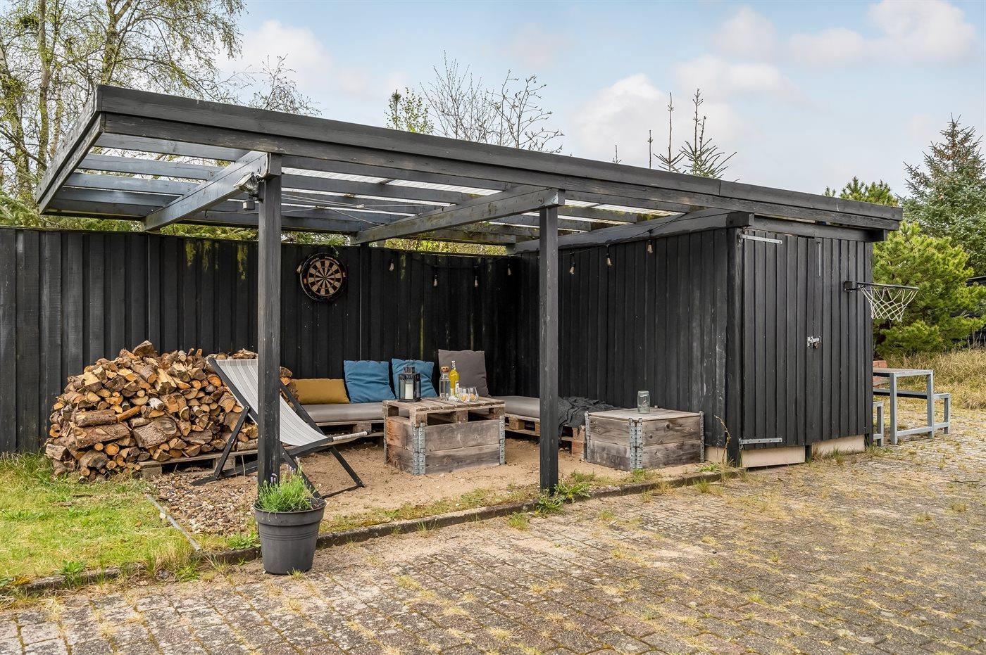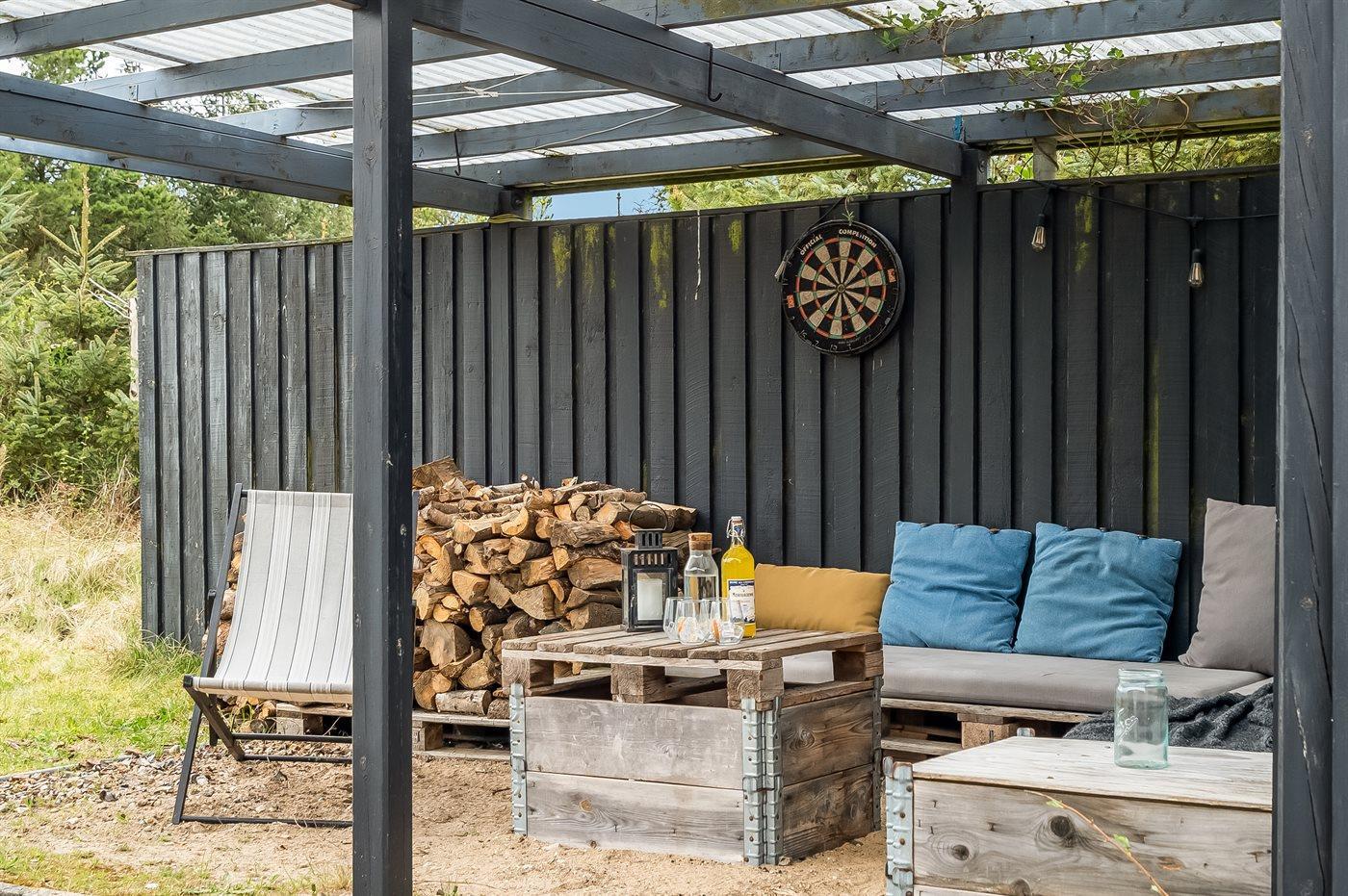 Ferieboligen er beliggende på en 1051 m² stor havegrund. Der er 400 m til havet. Der er en sø i en afstand af 5400 m. Nærmeste forretning er beliggende i en afstand af 5300 m. Der er en golfbane i en afstand af 4100 m. Til ferieboligen hører åbent terrasseareal. Desuden er der overdækket terrasse. Gynge. Grill til rådighed. Parkering ved ferieboligen.