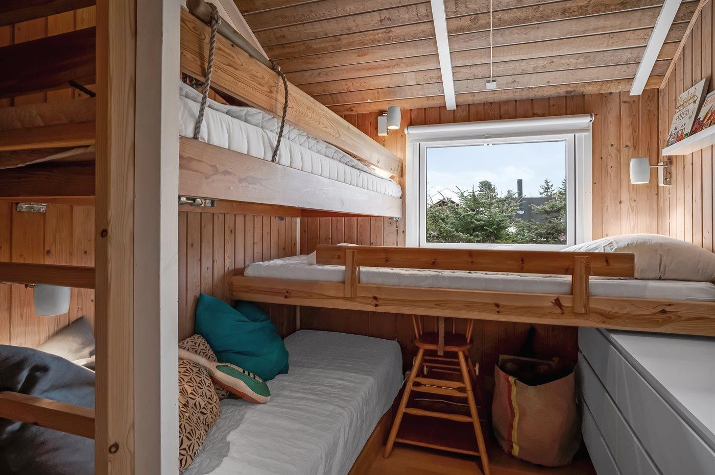 Der er i alt 3 soveværelser. Sovepladserne fordeler sig på: 4 sovepladser i dobbeltsenge. 1 soveplads i enkeltseng. 3 sovepladser i køjesenge.