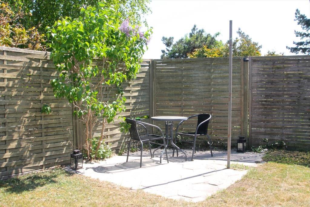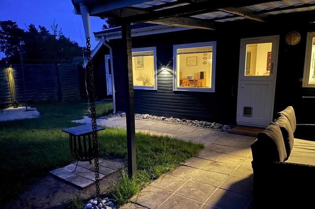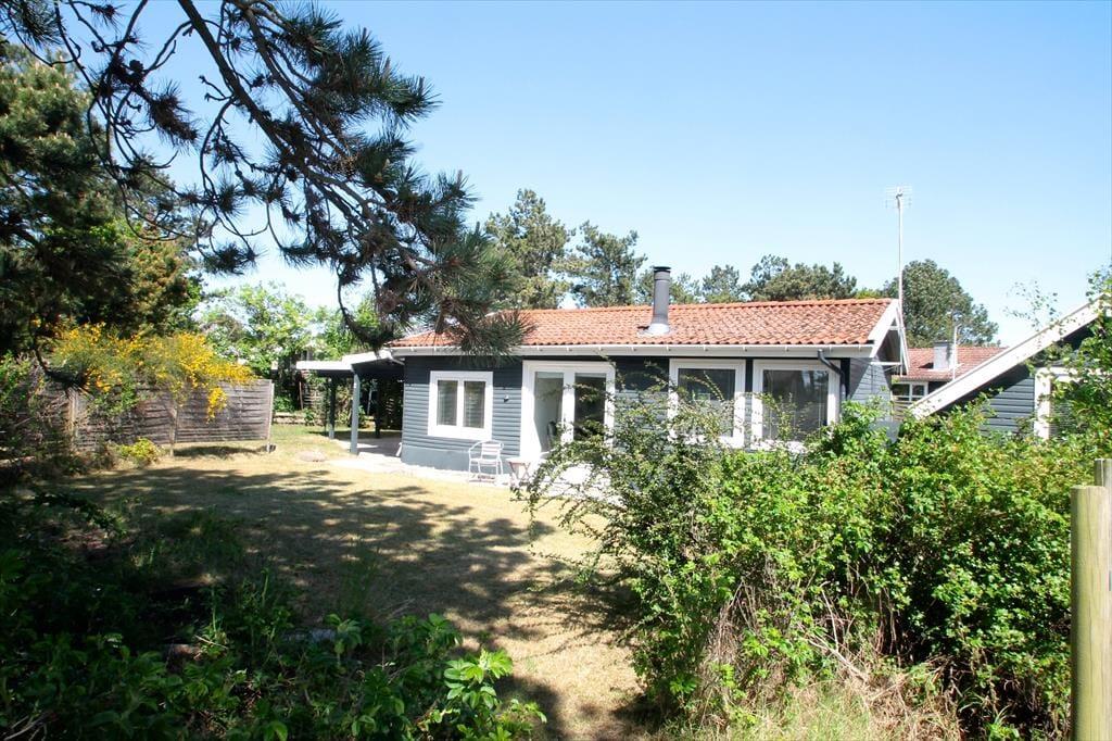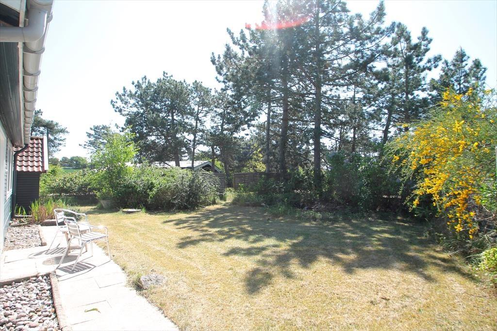 Huset har en 700 m2 grund, hvorfra der er direkte adgang til vejen til dejlig sandstrand. Der er en overdækket østvendt fliseterrasse med udekøkken, og udendørs bruser med varmt og koldt vand. Ved feriehuset er der havemøbler og liggestole.
