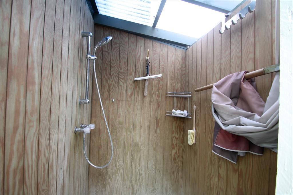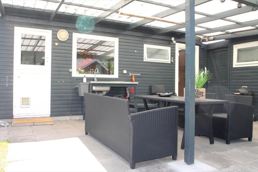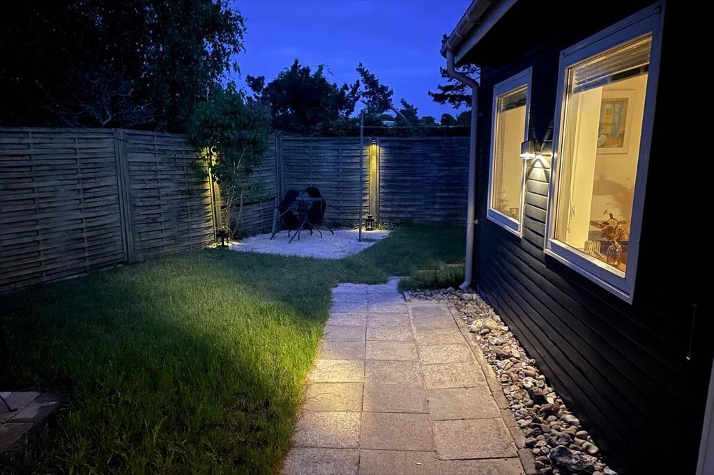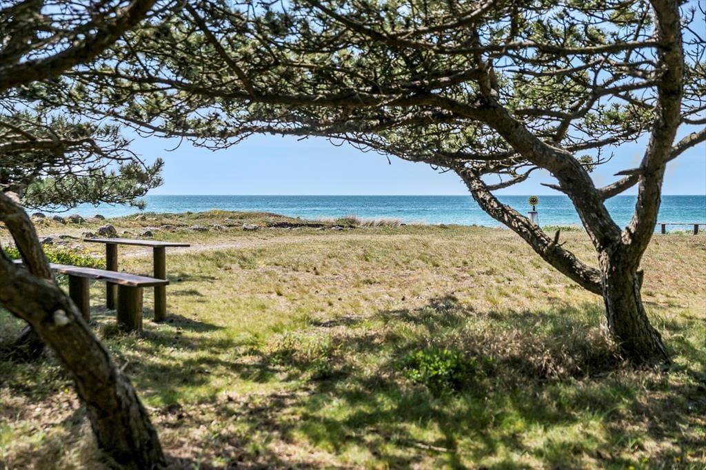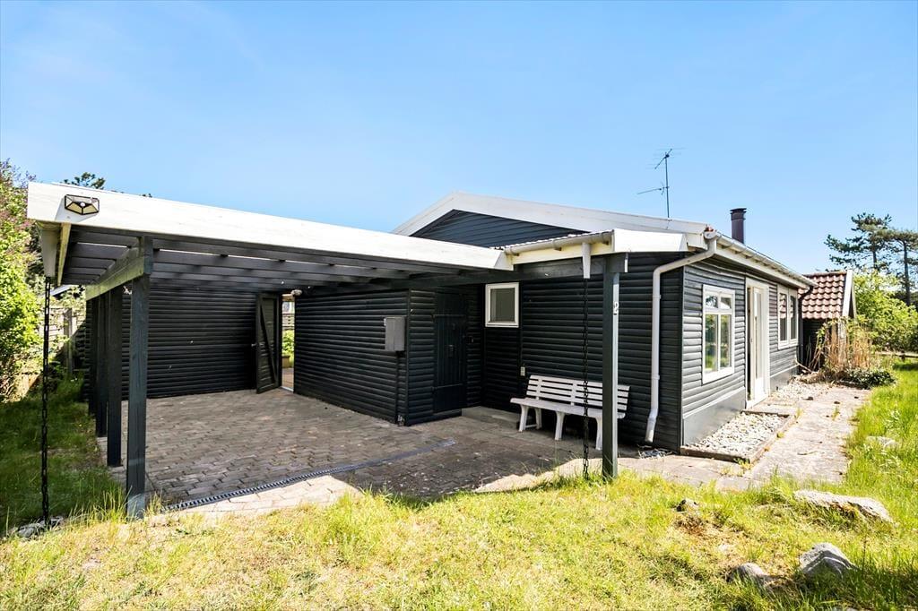 Huset har en 700 m2 grund, hvorfra der er direkte adgang til vejen til dejlig sandstrand. Der er en overdækket østvendt fliseterrasse med udekøkken, og udendørs bruser med varmt og koldt vand. Ved feriehuset er der havemøbler og liggestole.