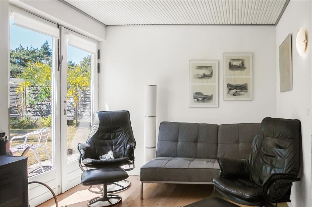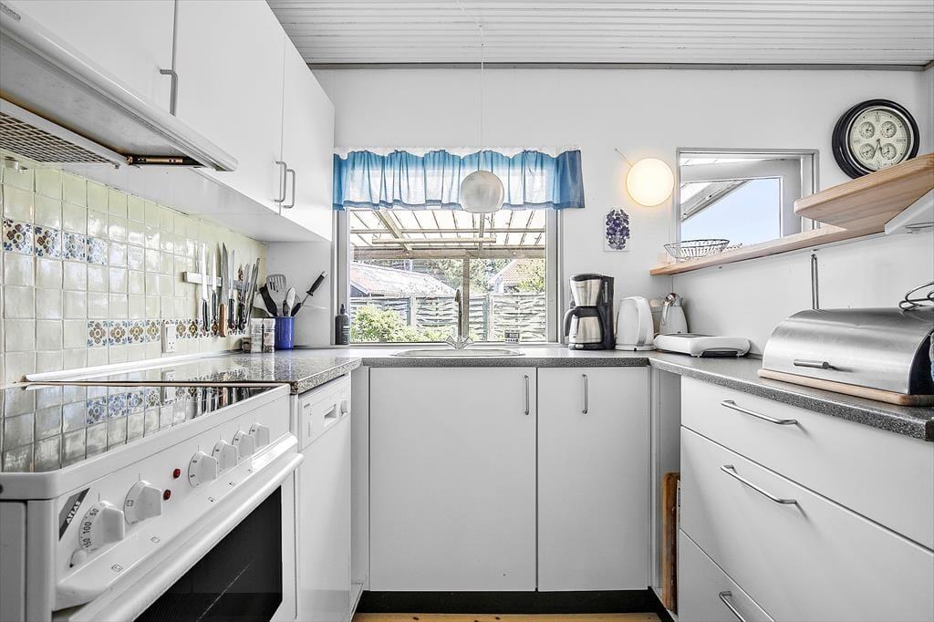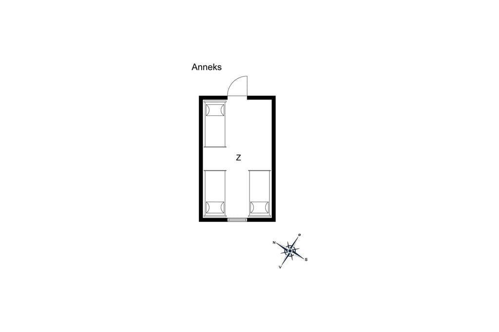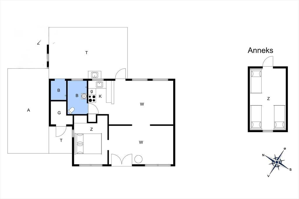 Feriehuset indeholder kombineret køkken og opholdstue. Køkken med keramisk komfur, mikroovn, opvaskemaskine og køleskab med fryser. Lys opholdsstue med udgang til terrasse, Hyggelig spisekrog, sofa, brændeovn, tv og dvd. Badeværelse med klinkegulv og bruseniche. To soverum, et med elevations dobbeltseng, og et fritliggende anneks med 4 enkeltsenge. Huset opvarmes med brændeovn og elvarme.