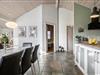 Velkommen indenfor: Det store, lyse køkken-alrum fungerer som husets naturlige samlingspunkt. Her kan I lave mad sammen i det nye køkken, nyde et godt måltid ved spisebordet eller slappe af i den hyggelige opholdsstue.