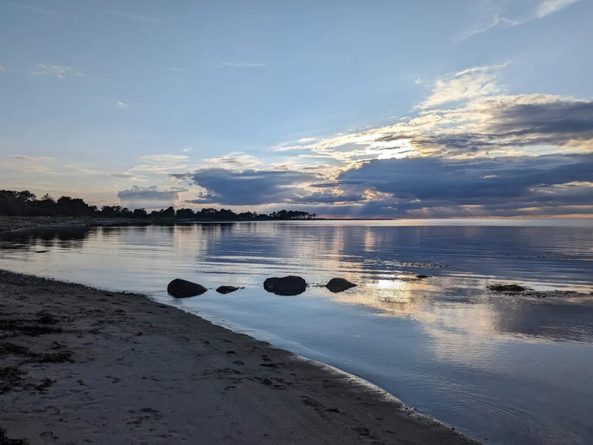 Hyggeligt sommerhus ved Bjerge Sydstrand med terrasse, brændeovn og moderne faciliteter på en stor naturgrund.