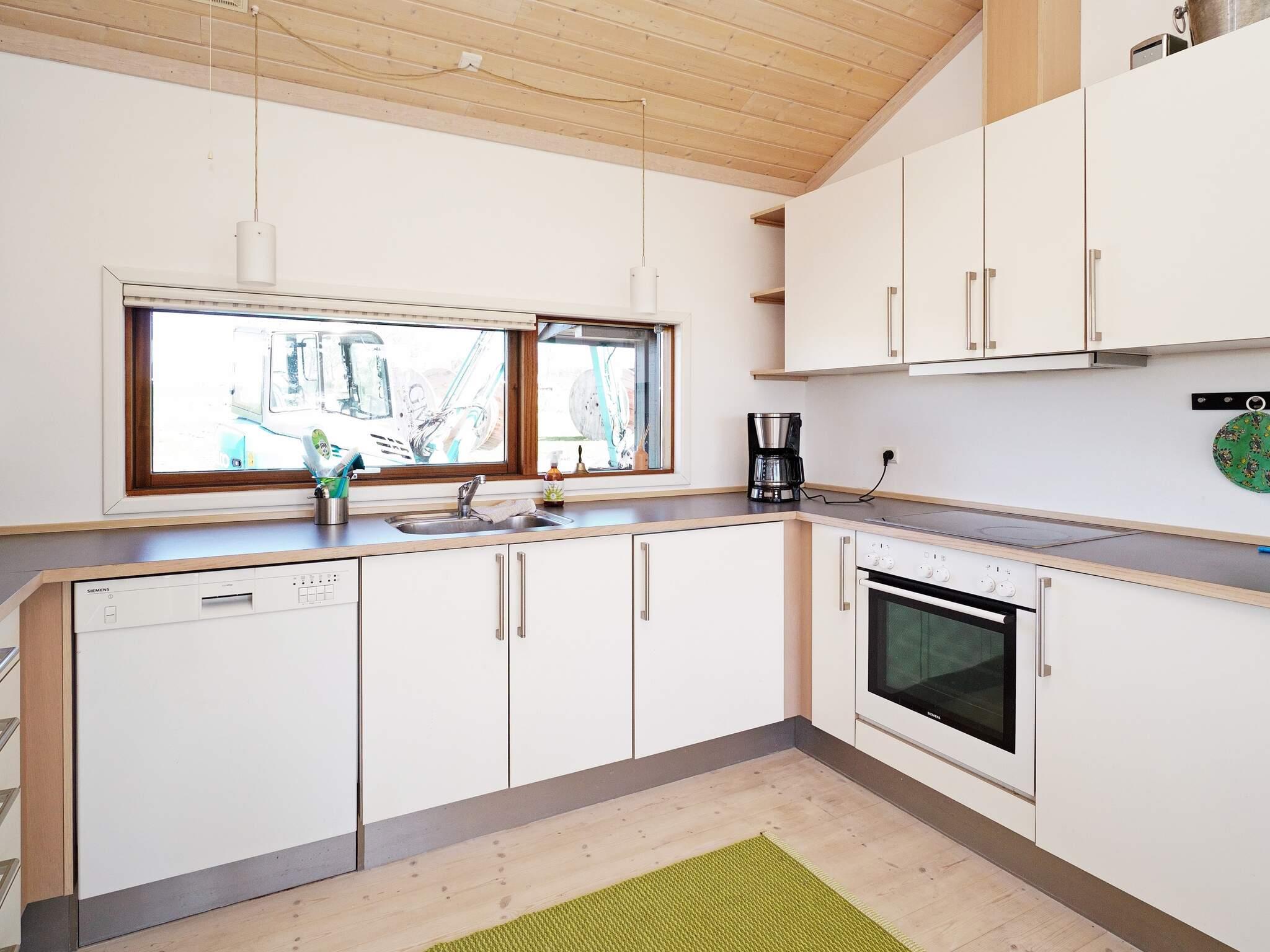 Indenfor bydes du velkommen af ??en funktionel entré med plads til frakker og sko. Herfra kommer du ind i et soveværelse med to enkeltsenge. Den lyse stue har store vinduespartier, hyggelig brændeovn og direkte udgang til en 21 m² overdækket terrasse. Det åbne køkken er godt integreret med spisepladsen. Fra stuen når du også et soveværelse med dobbeltseng, mens et andet soveværelse med egen terrasse er placeret ud for gangen. En lille hems med to ekstra sovepladser giver ekstra plads, især for børn.
