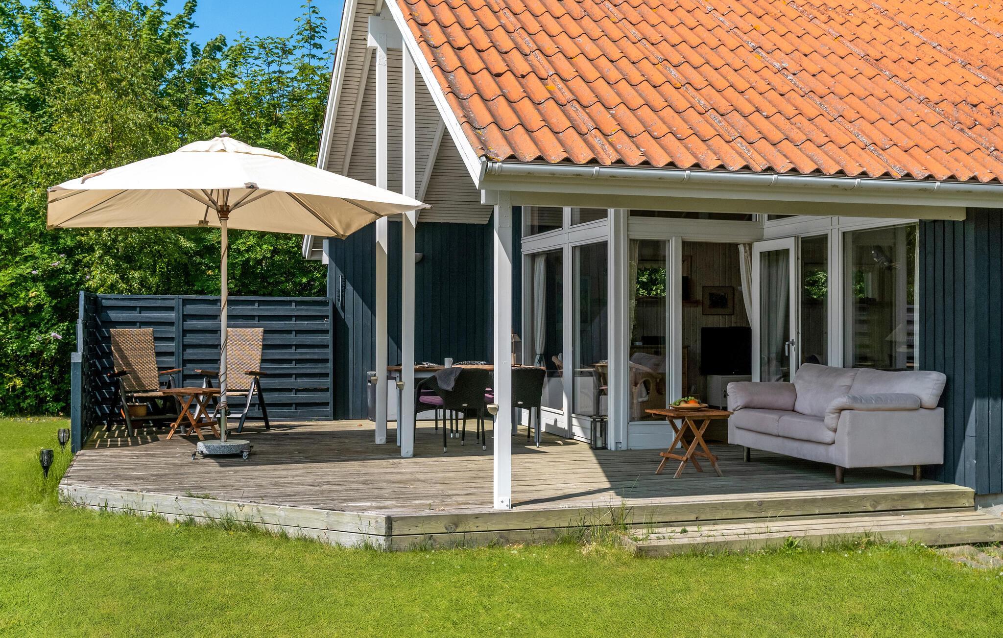 Nyd fred og naturskønhed i dette lyse og rummelige fritidshus ved Bjerge Sydstrand med trampolin og tæt på børnevenlig strand.