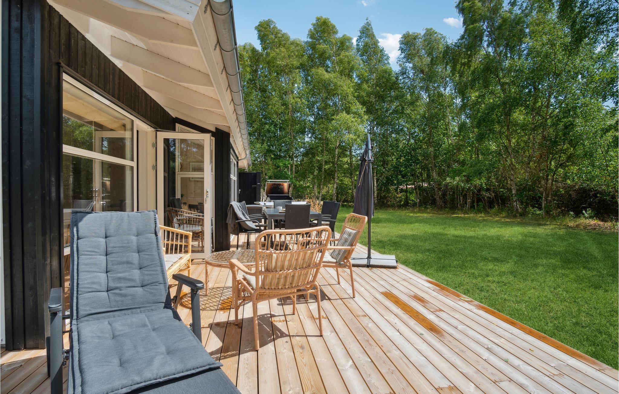 I kan også nyde jeres tid i den velholdte have med flere terrasser og et rummeligt grønt område. På varme dage kan I dase på liggestolene og skylle jer under udendørsbruseren. Børnene vil sikkert have det sjovt på trampolinen. Afslut en stemningsfuld sommeraften omkring bålet, mens I griller skumfiduser og kigger ind i flammerne.