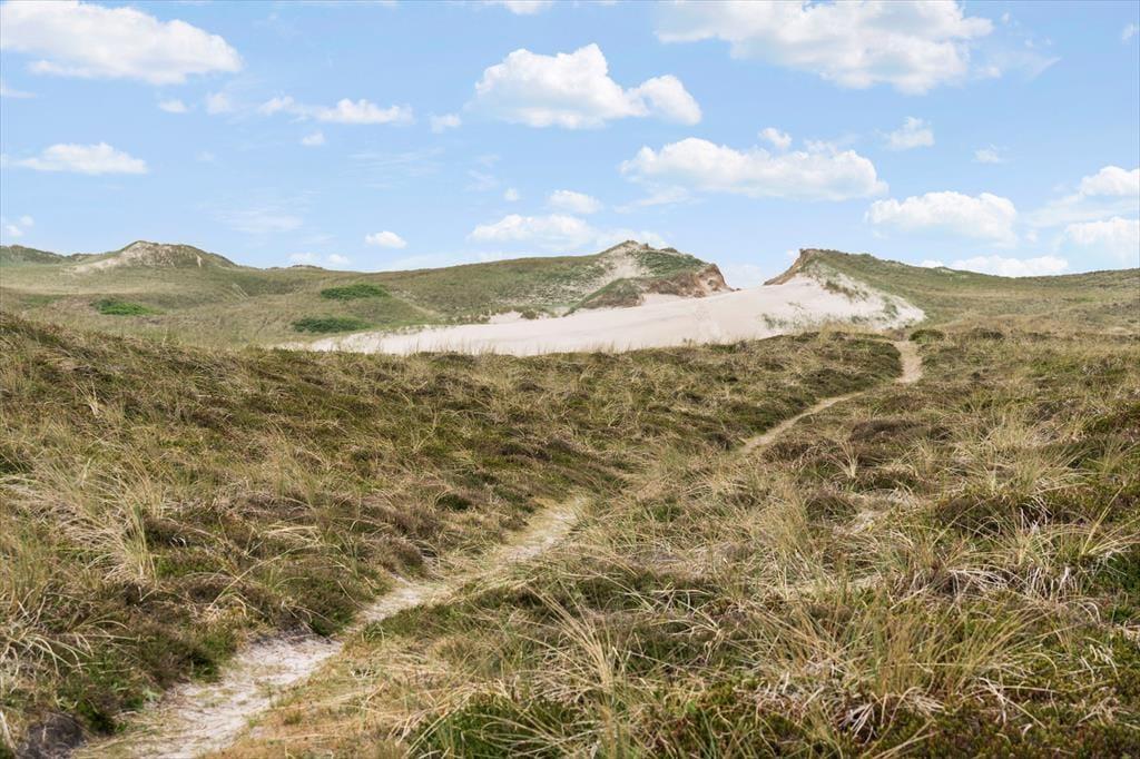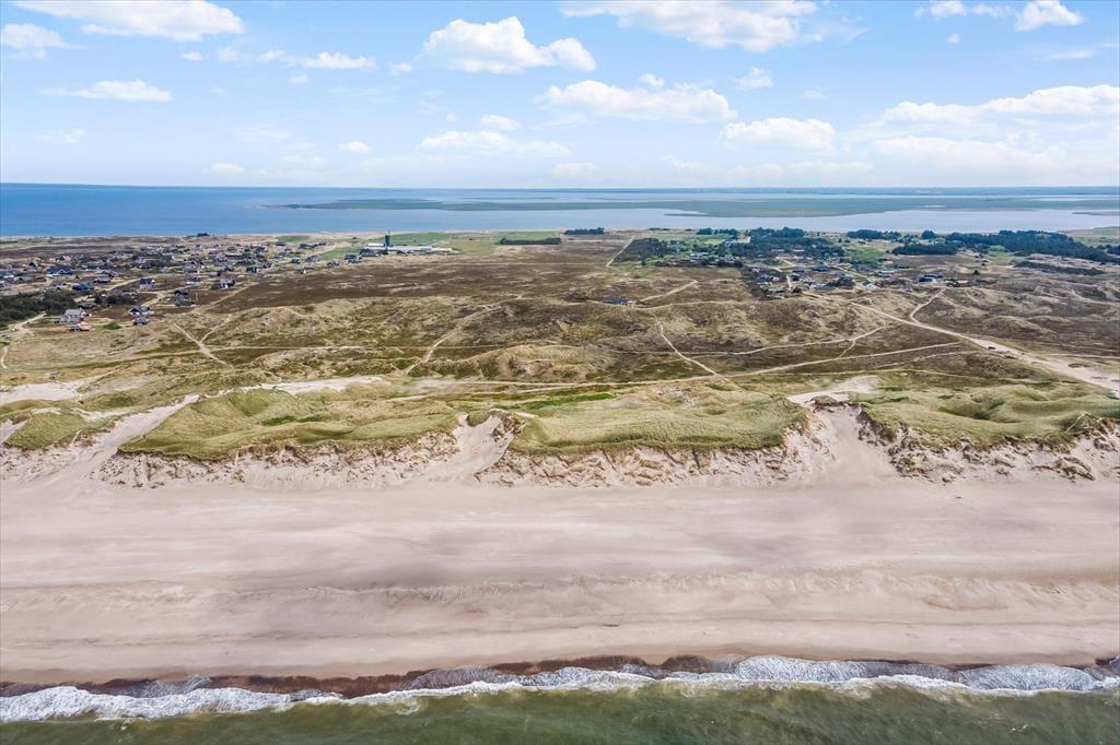 Der er lagt op til en uforglemmelig ferie for alle, der elsker naturen og havet, for sommerhuset ligger helt fantastisk i det viltre kystlandskab bare 400 meter fra Bjerregård Strand og omtrent en kilometer fra Ringkøbing Fjord. Naturgrunden går næsten helt ud til vestkysten, og I skal bare følge en lille sti over heden og klitterne, før I kommer til Vesterhavet og den smukke sandstrand. I Bjerregård ligger en helårsåben købmand, og lokalområdet byder på mange dejlige udflugtsmuligheder – blandt andet til fiskerbyen Hvide Sande, fuglereservatet Tipperne og hyggelige Vinterlejehavn ligger tæt på huset.