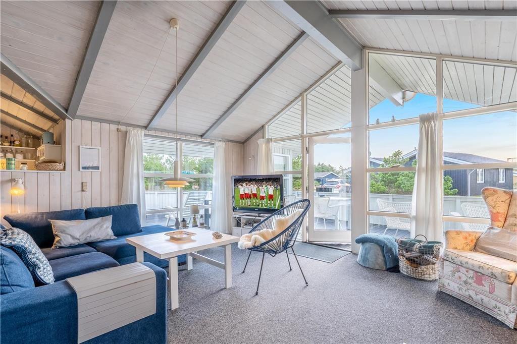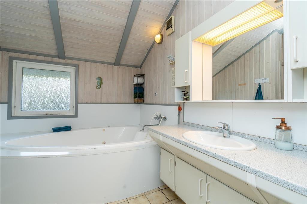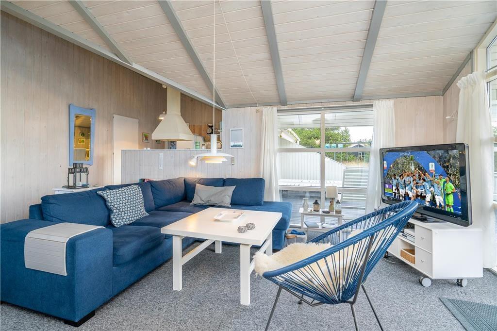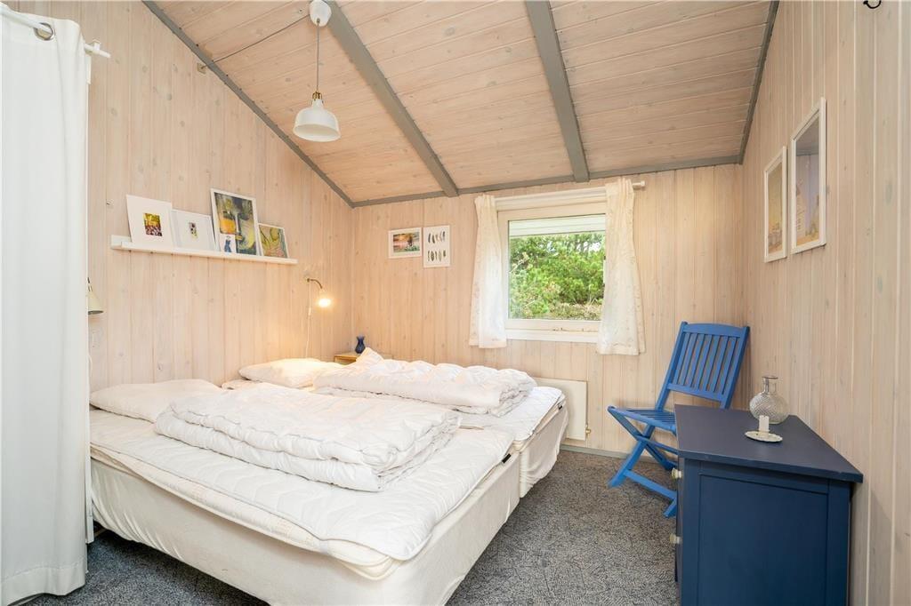 Når I holder ferie i dette skønne sommerhus, bor I bare 750 meter fra Bjerregårds flotte strand og det mægtige Vesterhav. Med sådan en beliggenhed kan gåture langs kysten, opkvikkende dukkerter og flotte solnedgange nemt indgå i det daglige ferieprogram, og hjemme i sommerhuset forsødes ferielivet af badeværelsets spabad og sauna.