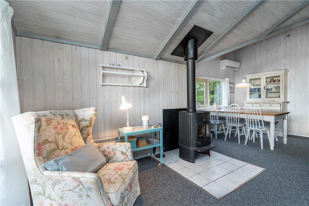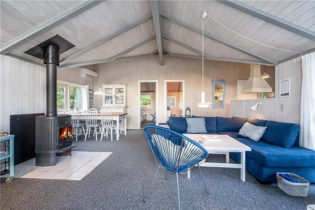 Inden døre i sommerhuset er der hele 92 m2 at gøre godt med, så fem personer kan nemt og bekvemt holde ferie sammen. Om natten kan I fordele jer på de tre soveværelser, og i løbet af dagen indbyder det store opholdsrum til fælles hyggestunder. Her er et veludstyret køkken integreret med stuen, og der er både spisebord og en komfortabel sofa som del af møblementet. På fladskærmen kan I streame dansk tv via Chromecast og se tysk tv via parabolen, mens varmepumpen og brændeovnen hurtigt kan sprede varme og hyggestemning. Trænger I virkelig til at slappe af, kan I forkæle jer selv med saunature og varme spabade på husets badeværelse, der også byder på bruser, vaskemaskine og gulvvarme.