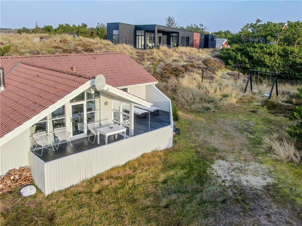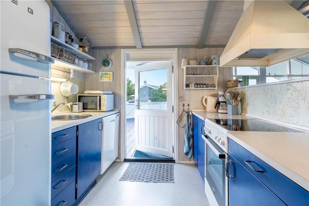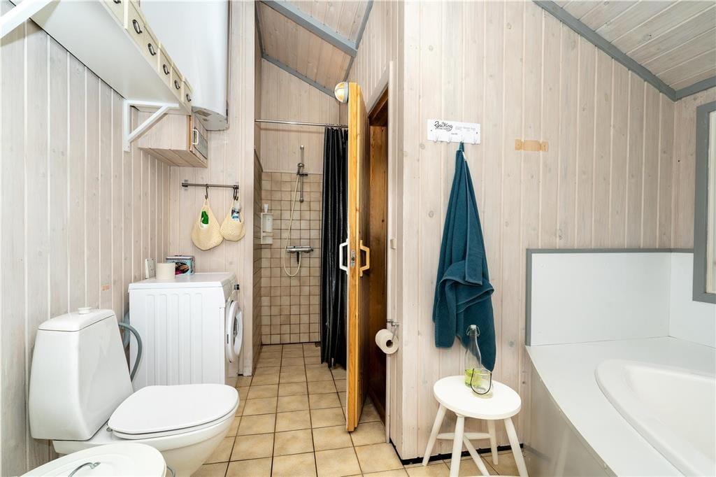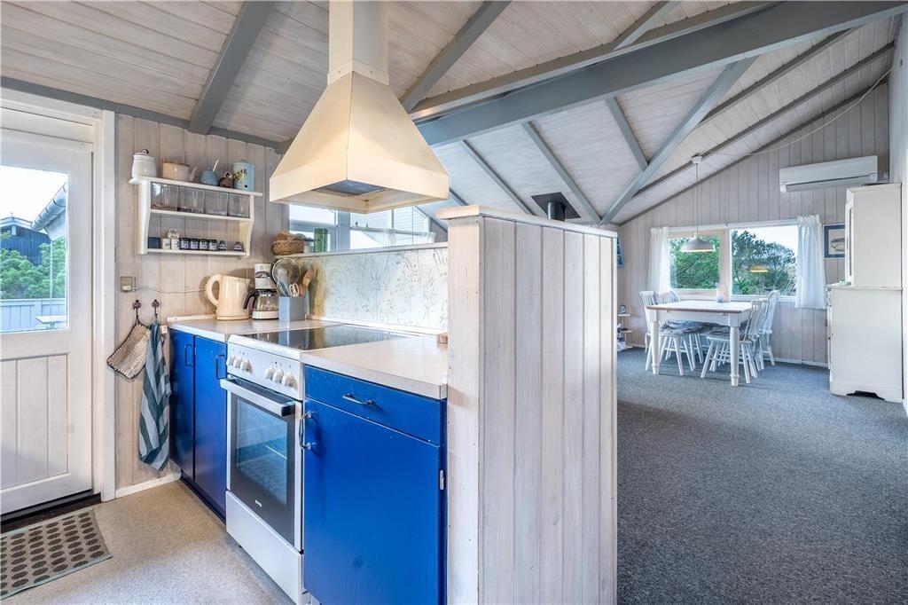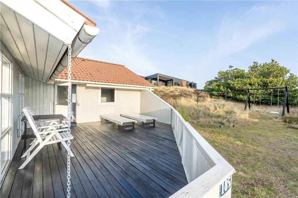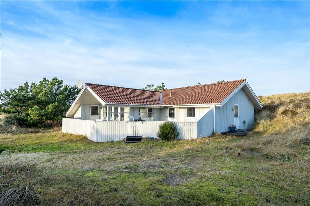 I får også en skøn ramme om ferielivet ude på den 50 m2 store træterrasse, der er orienteret mod sydøst. Terrassen er lukket og delvist overdækket, og mod vest sørger både huset og klitgrundens beplantning for læ, så I kan finde en skøn opholdsplads, når I vender hjem efter strandturen. Der er for øvrigt en gynge til børnene og en tørresnor på den kuperede, lyngbeklædte grund.