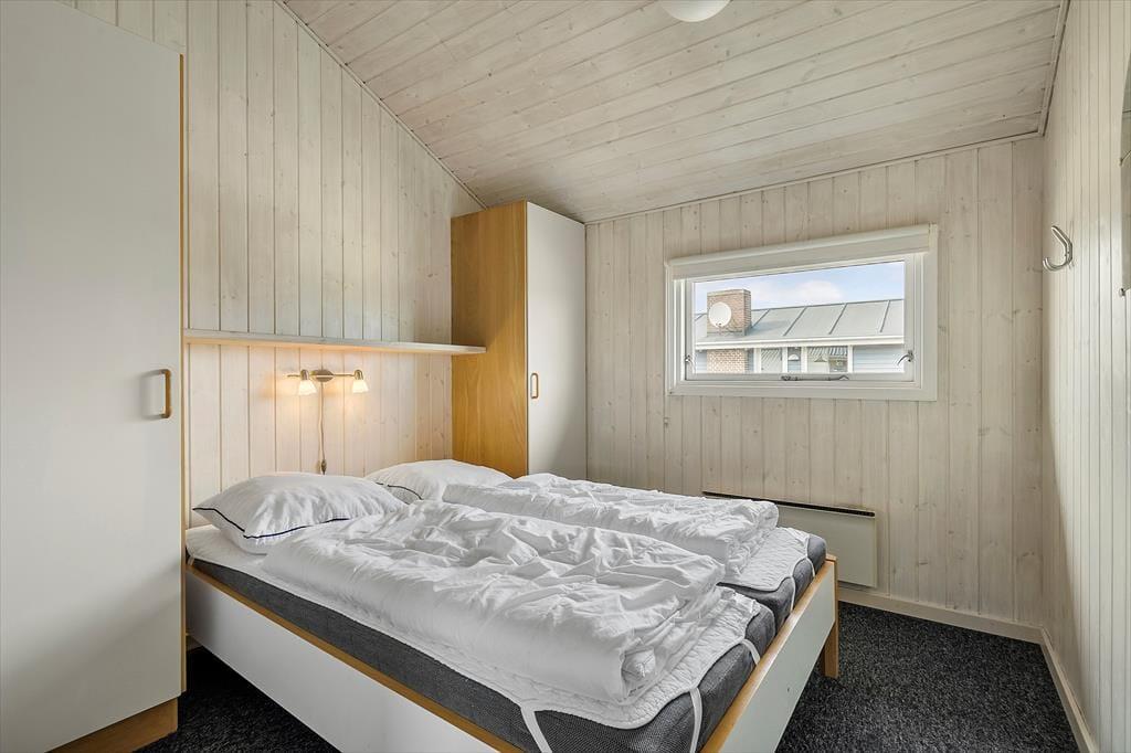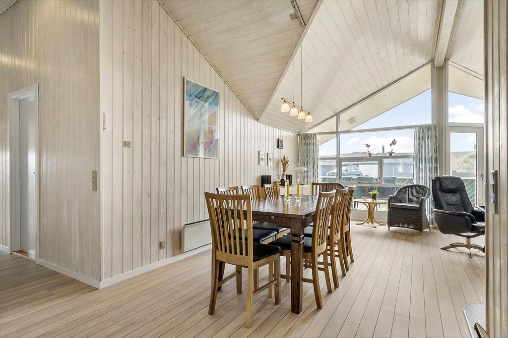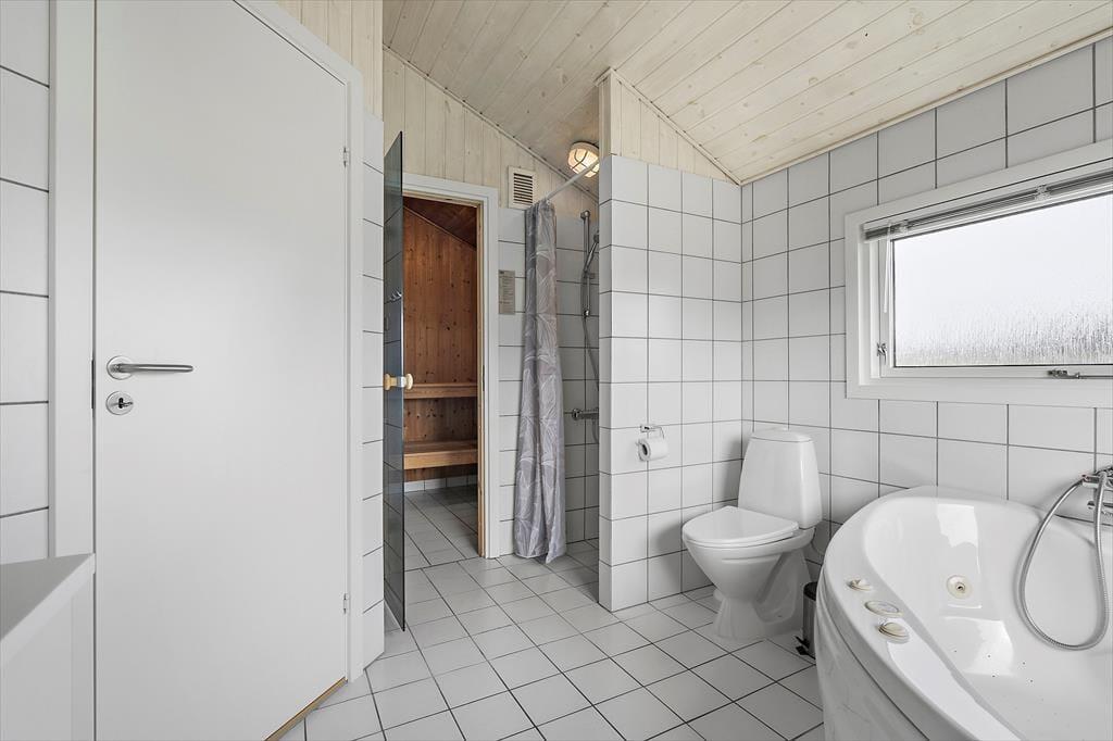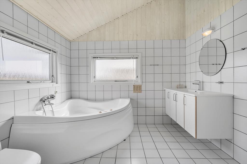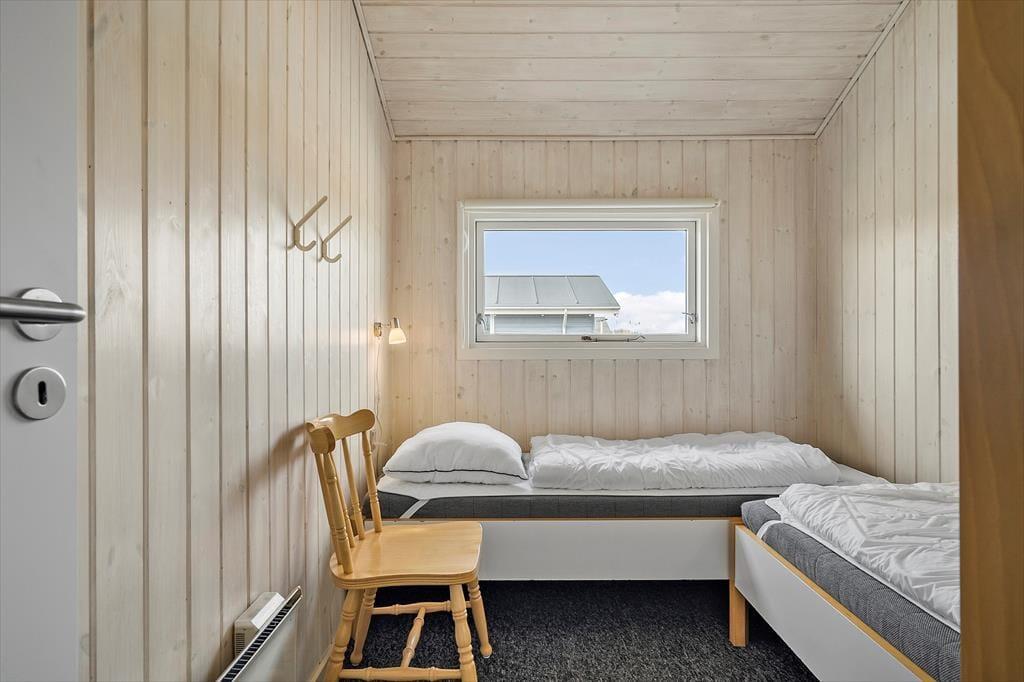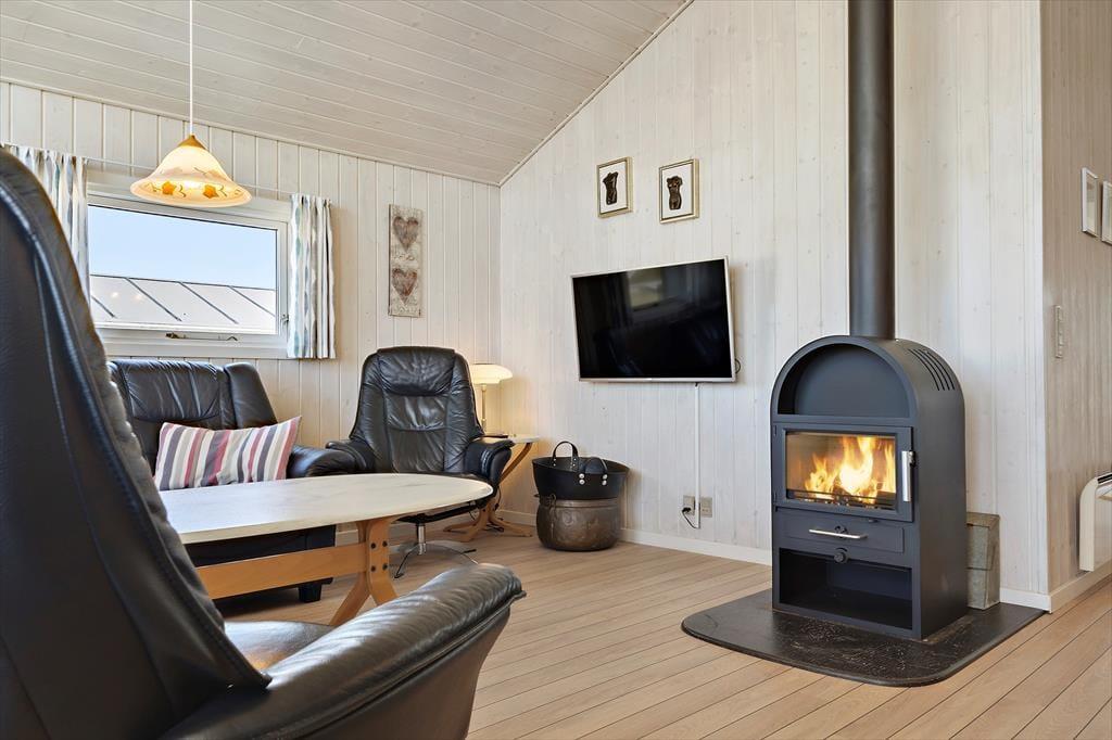 Ved ankomsten til sommerhuset giver hoveddøren adgang til et rummeligt bryggers med vaskemaskine, tørretumbler og god plads til overtøj og sko. Herfra kan I fortsætte ind i opholdsafdelingen, hvor køkken og stue er forenet. Gennem stuens store vinduesparti har I udsigt mod vest ud mod klitterne, hvilket er med til at højne feriefornemmelsen, når I sidder samlet om spisebordet eller slapper af i sofaen nær brændeovnen. En alkove fungerer som hyggekrog i løbet af dagen, og om aftenen kan I rede op til to personer – måske mest oplagt til to børn, der synes det er hyggeligt at have forældrene i nærheden, når det er sengetid. Planløsningen byder derudover på fire soveværelser, og de to badeværelser er også med til at gøre sommerhuset delevenligt for to familier. Det største badeværelse har i øvrigt spabad og sauna, så feriedagene kan byde på wellness og tilbagelænet afslapning.