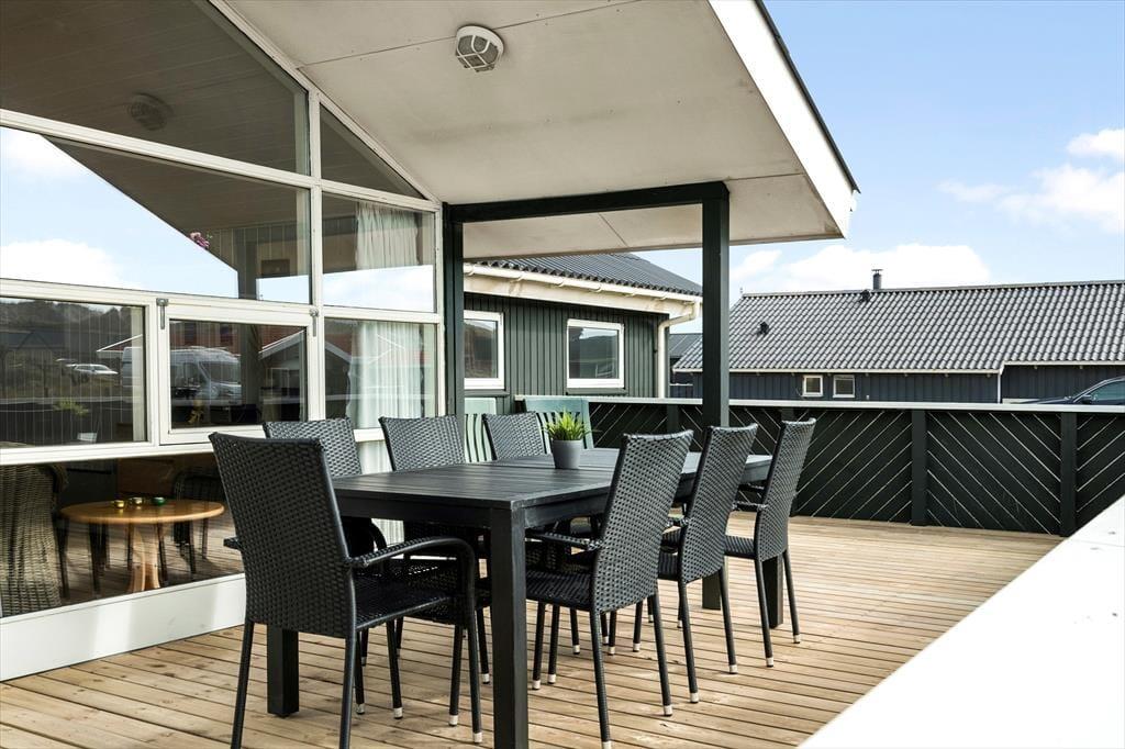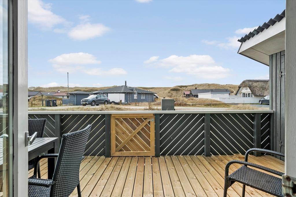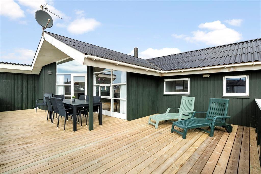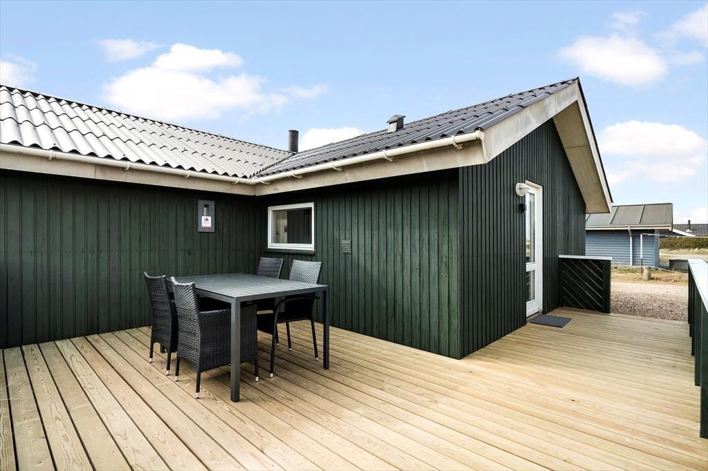 Ude i det fri har I to dejlige terrasseområder at vælge imellem. En åben terrasse er med sin østvendte orientering en oplagt opholdsplads først på dagen, og en delvist overdækket terrasse vender mod vest, så I har udsigt til klitterne og de flotte solnedgange, når I griller og hygger jer rundt om havebordet.